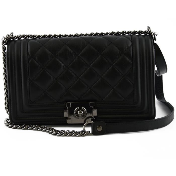 sac noir cuir chaine