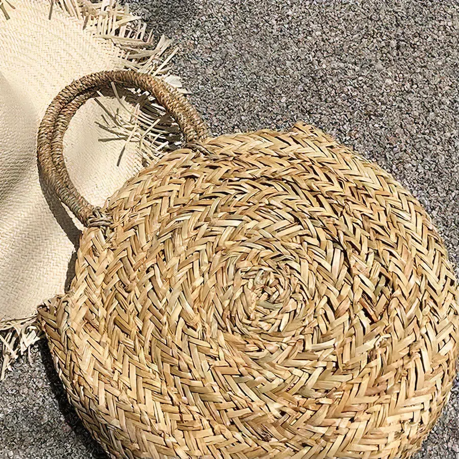 sac rond paille noir