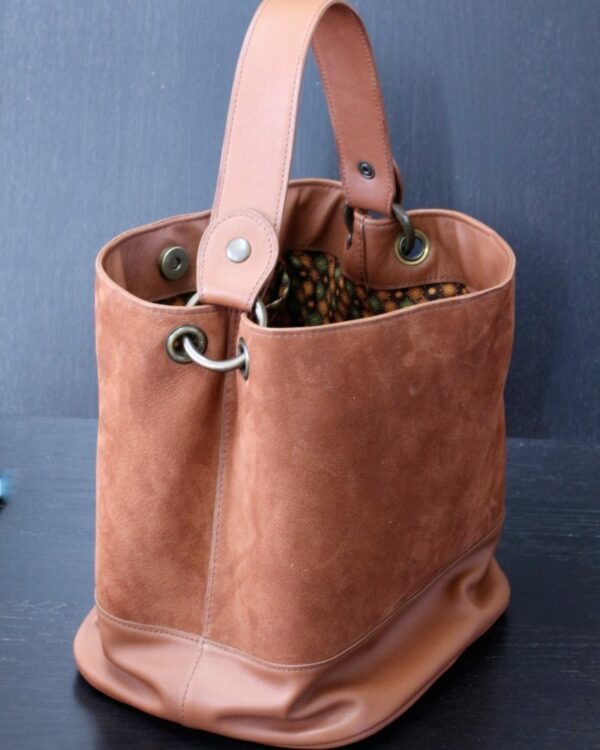 sac seau cuir marron