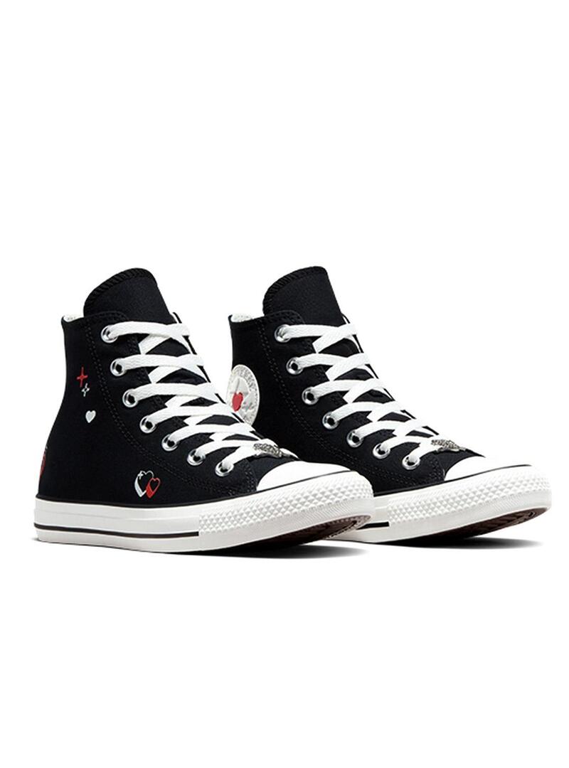converse nere con il cuore rosso