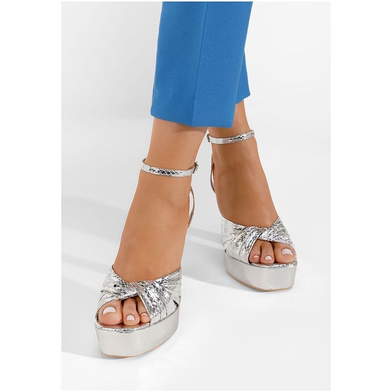 sandali argento tacco grosso