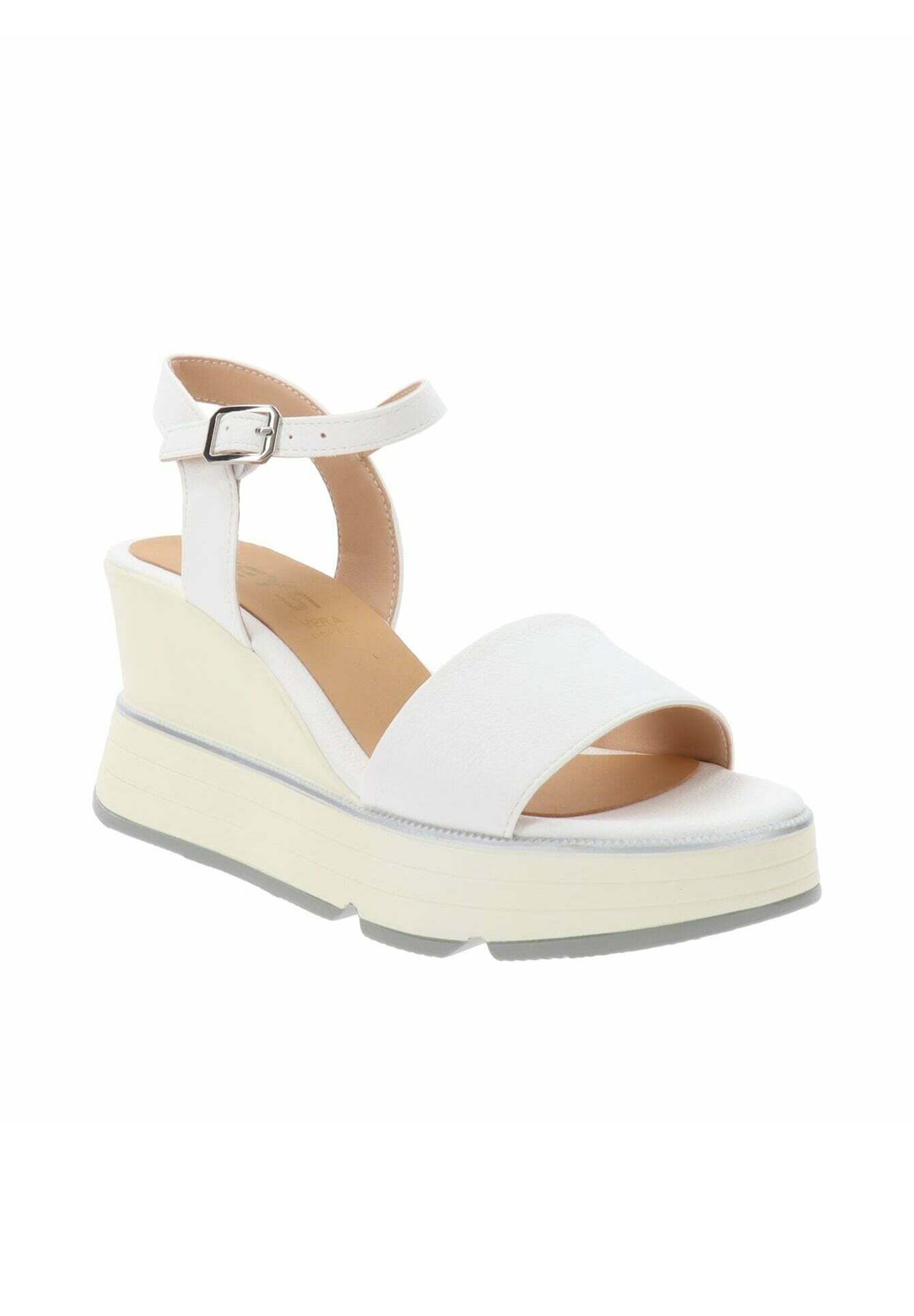 sandali bianchi con zeppa e plateau