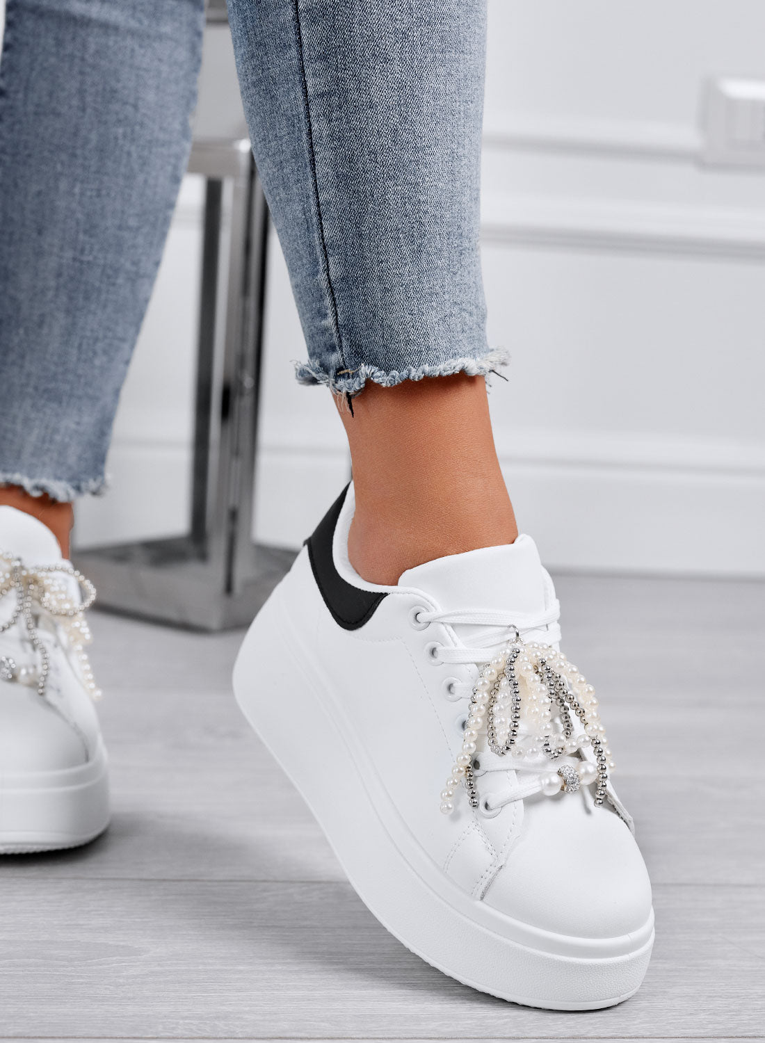 sneakers bianche con perle