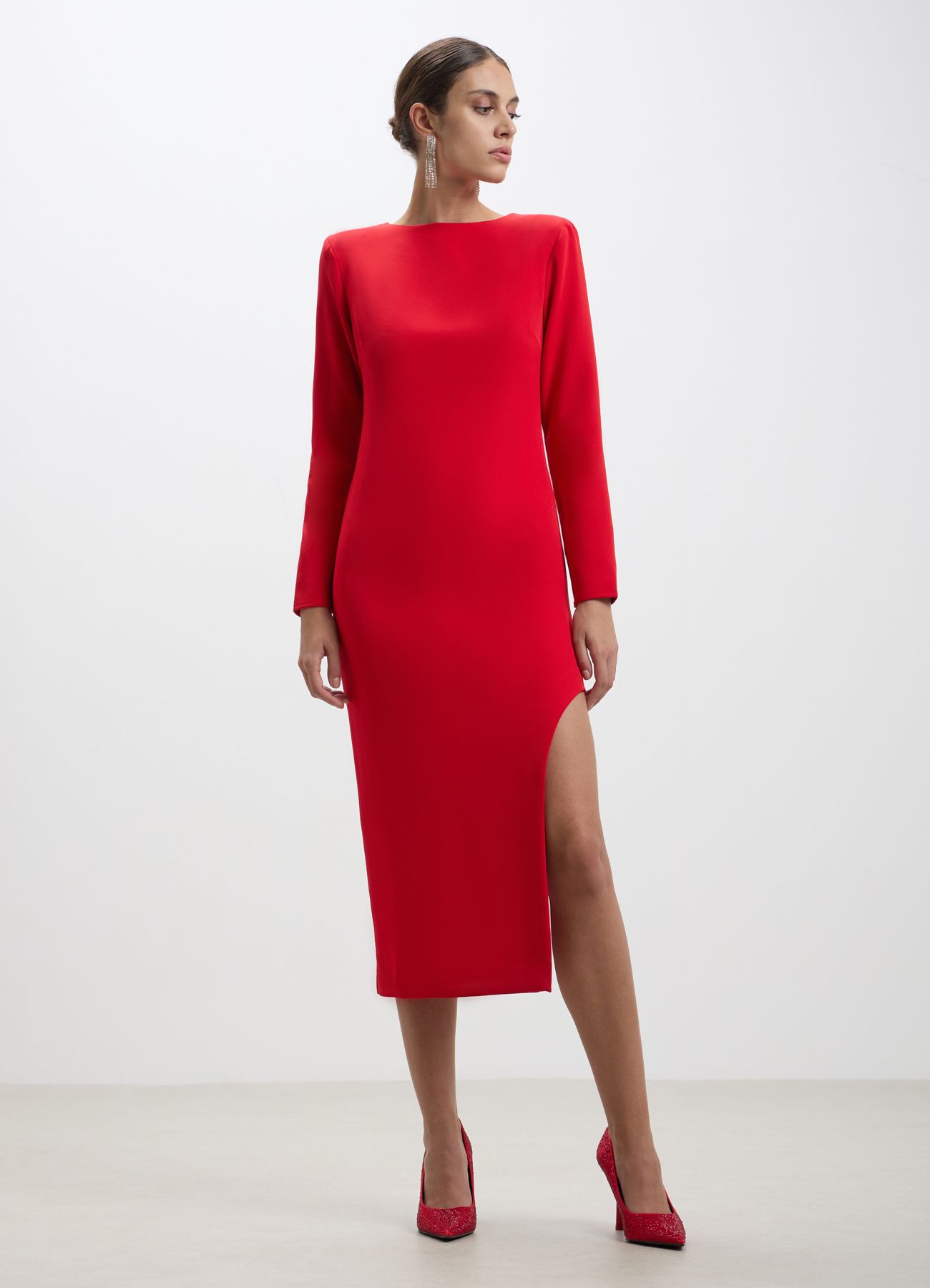 vestito rosso lungo elegante con spacco