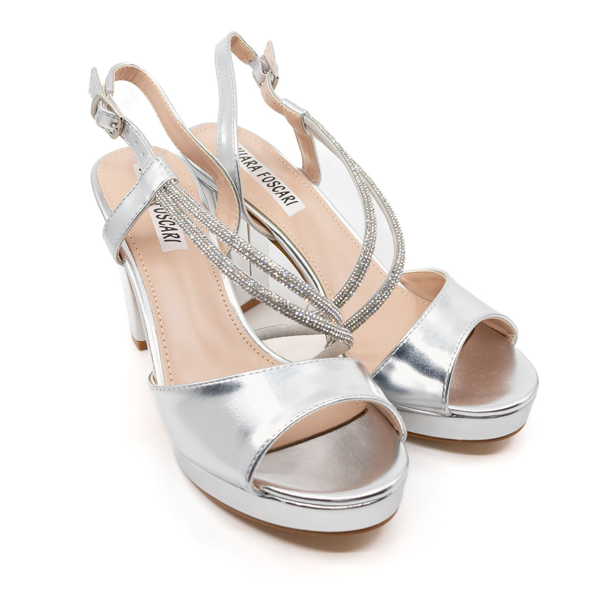 sandali eleganti argento plateau