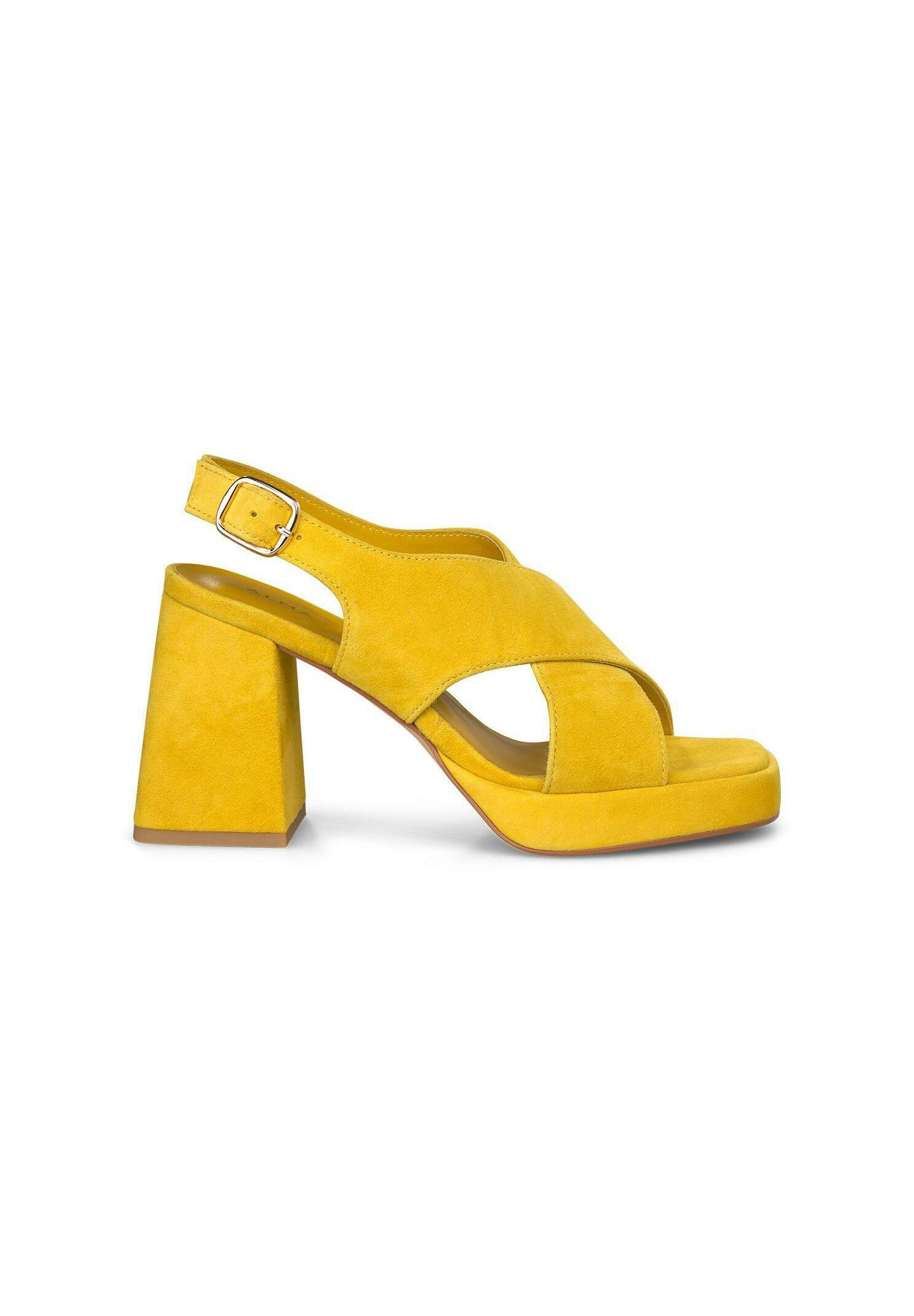 scarpe gialle tacco largo