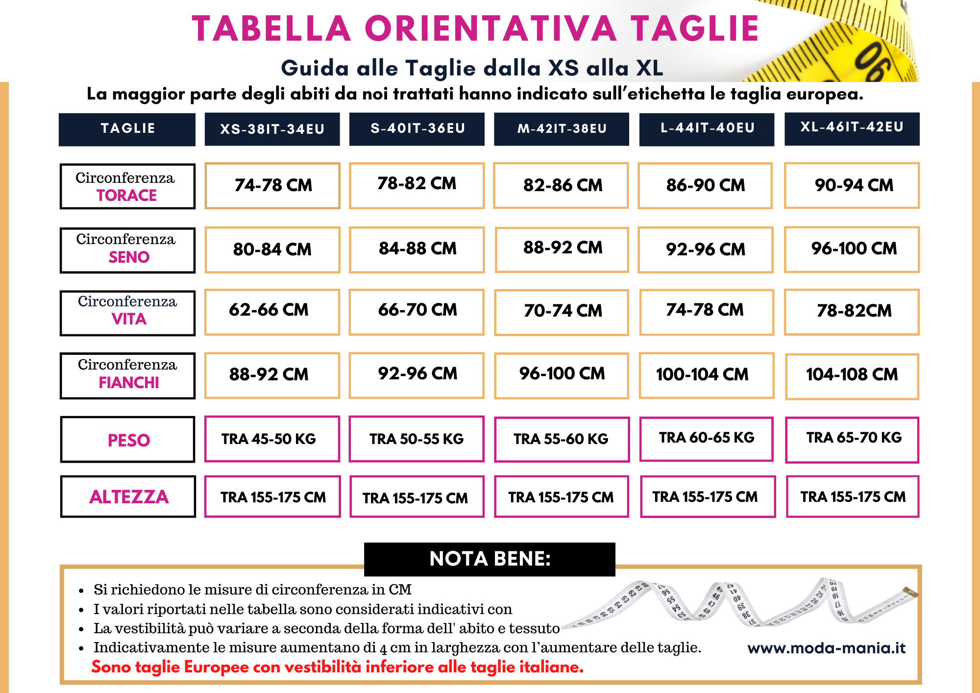 tabella taglie curvy