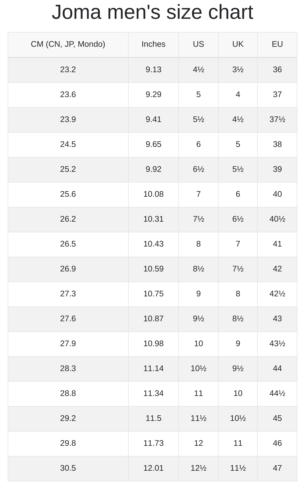 tabella taglie joma