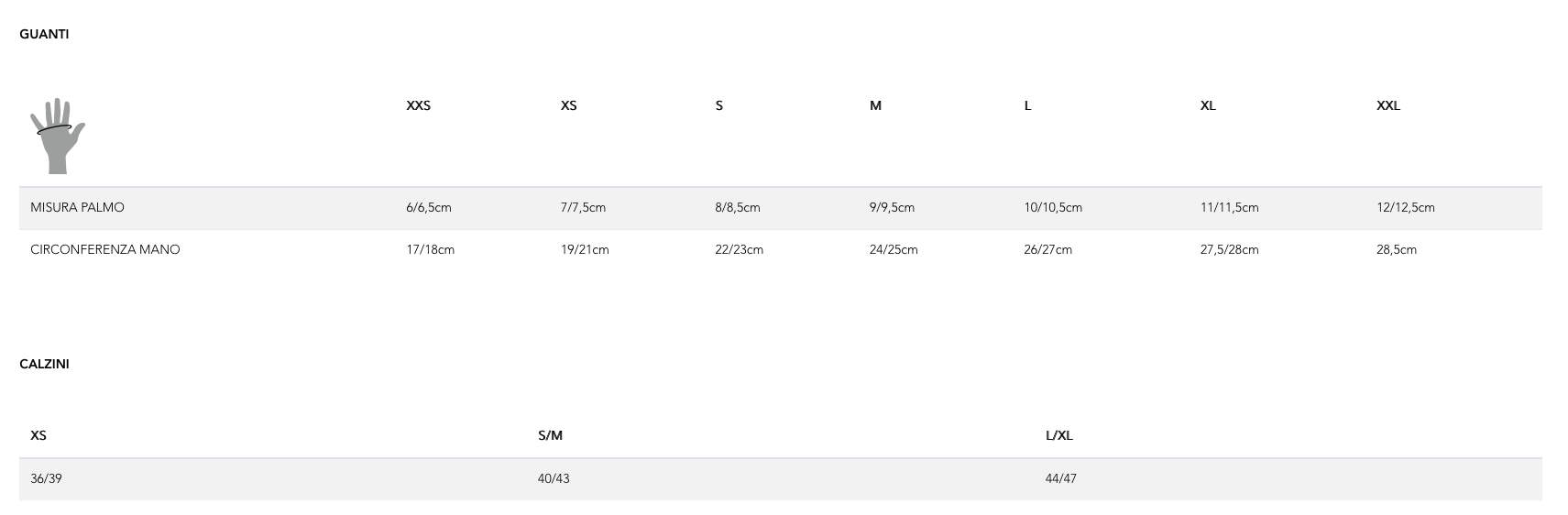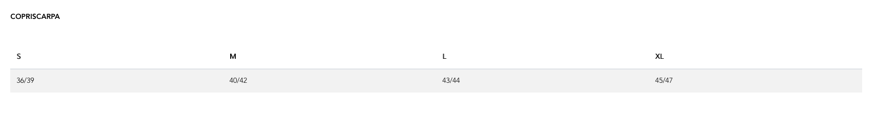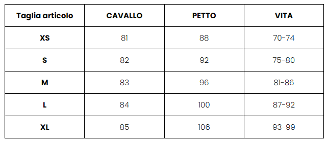 tabella taglie pissei