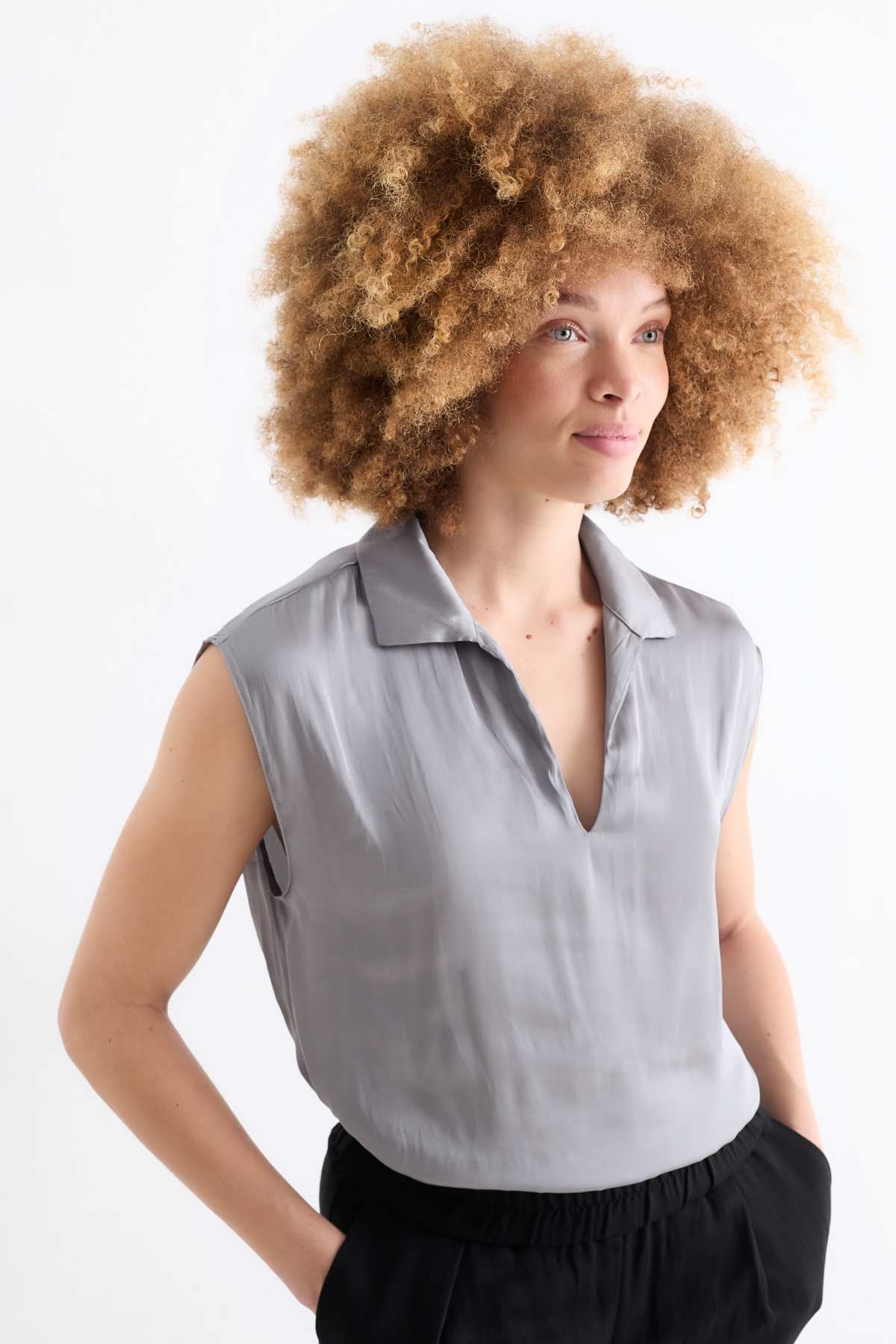 camicetta senza maniche molto scollata