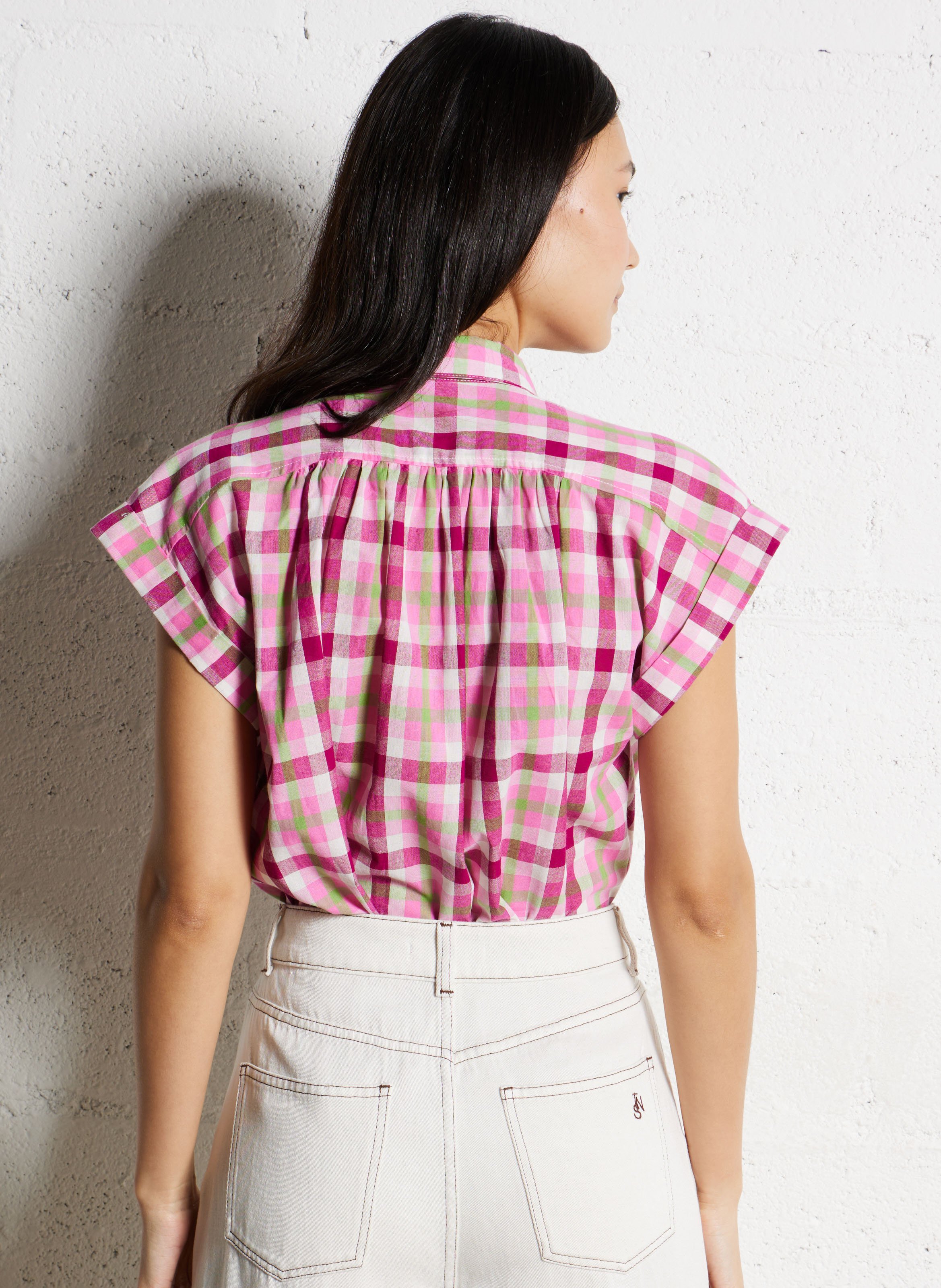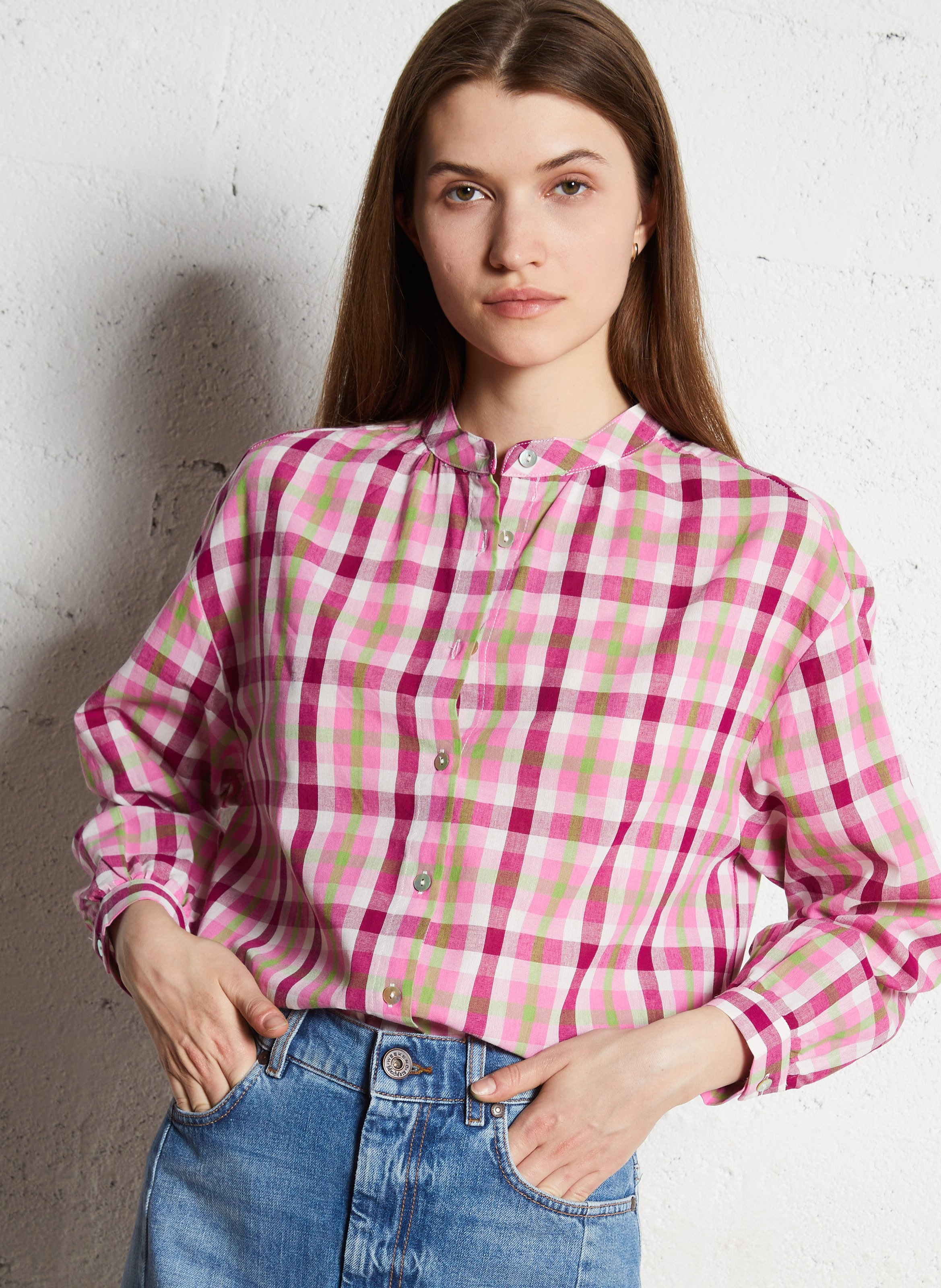 camicia a quadri rosa