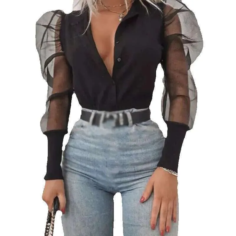 camicia con maniche trasparenti