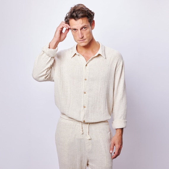 camicia di lino beige