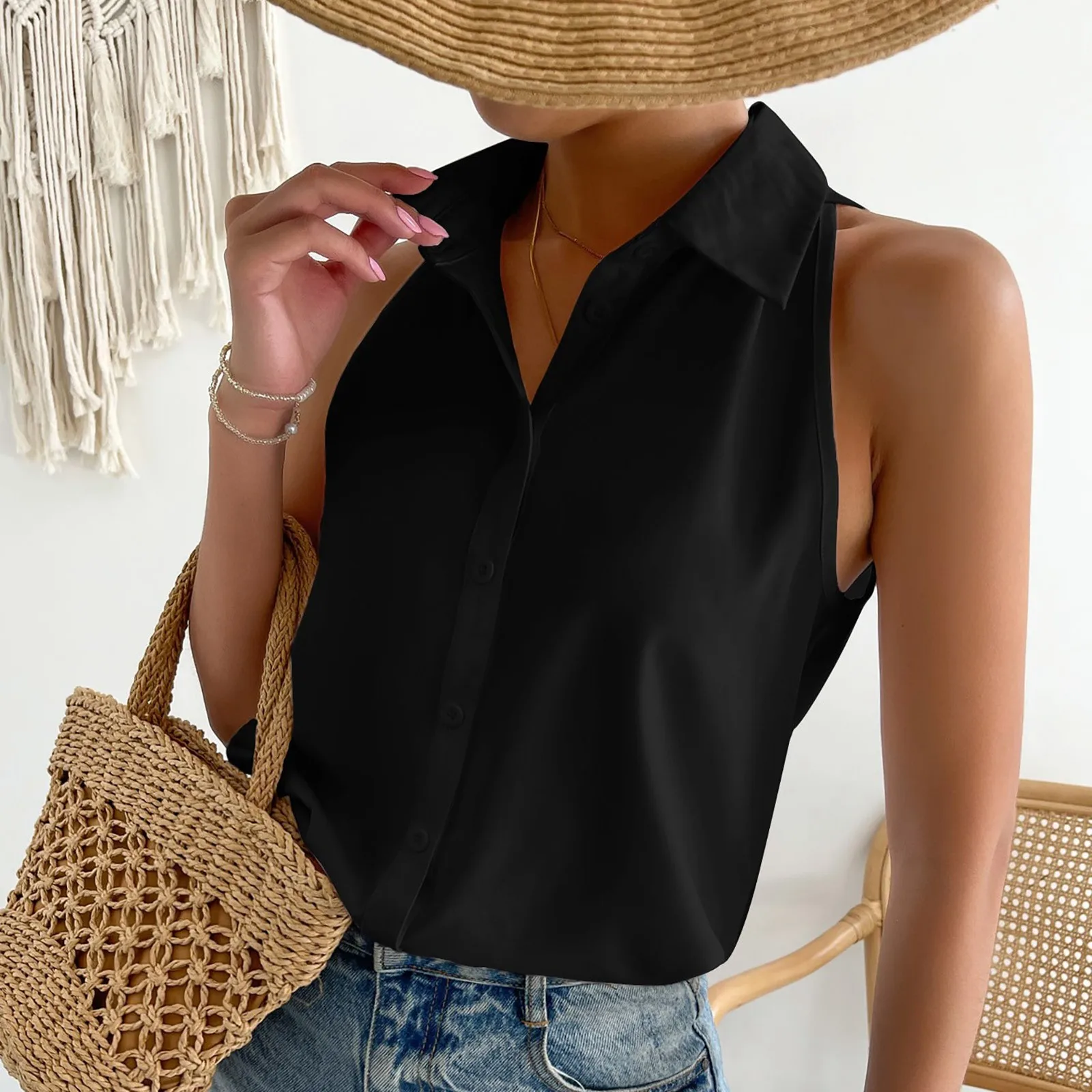 camicia donna senza maniche