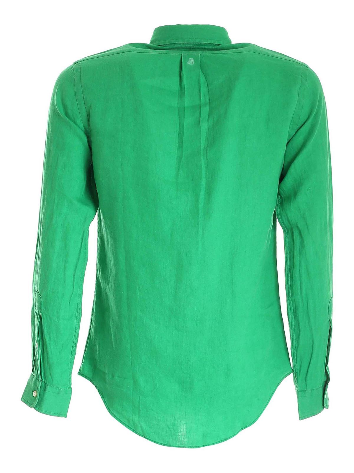 camicia lino ralph lauren verde
