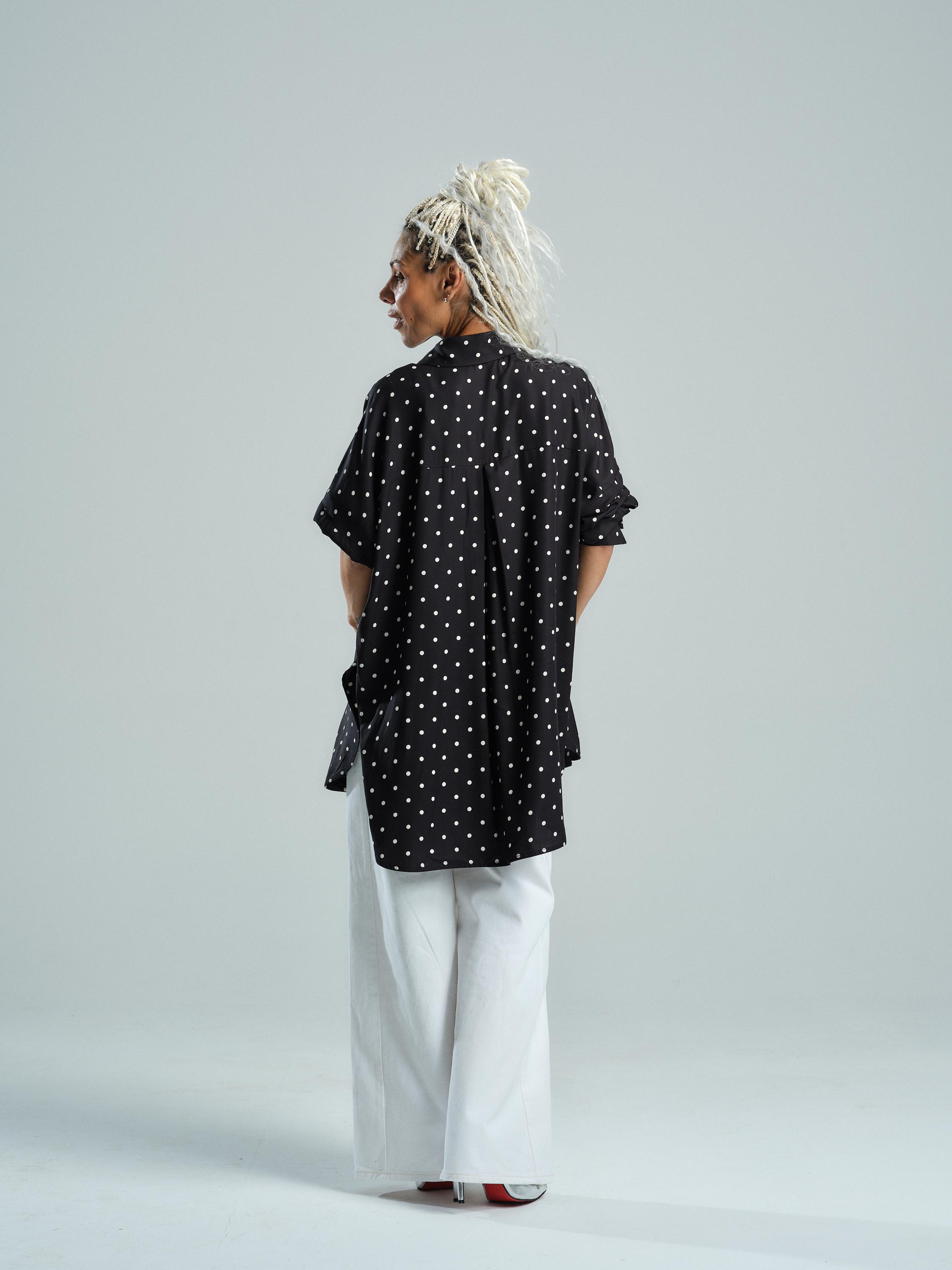 camicia nera a pois bianchi