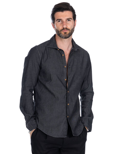 camicia nera jeans uomo
