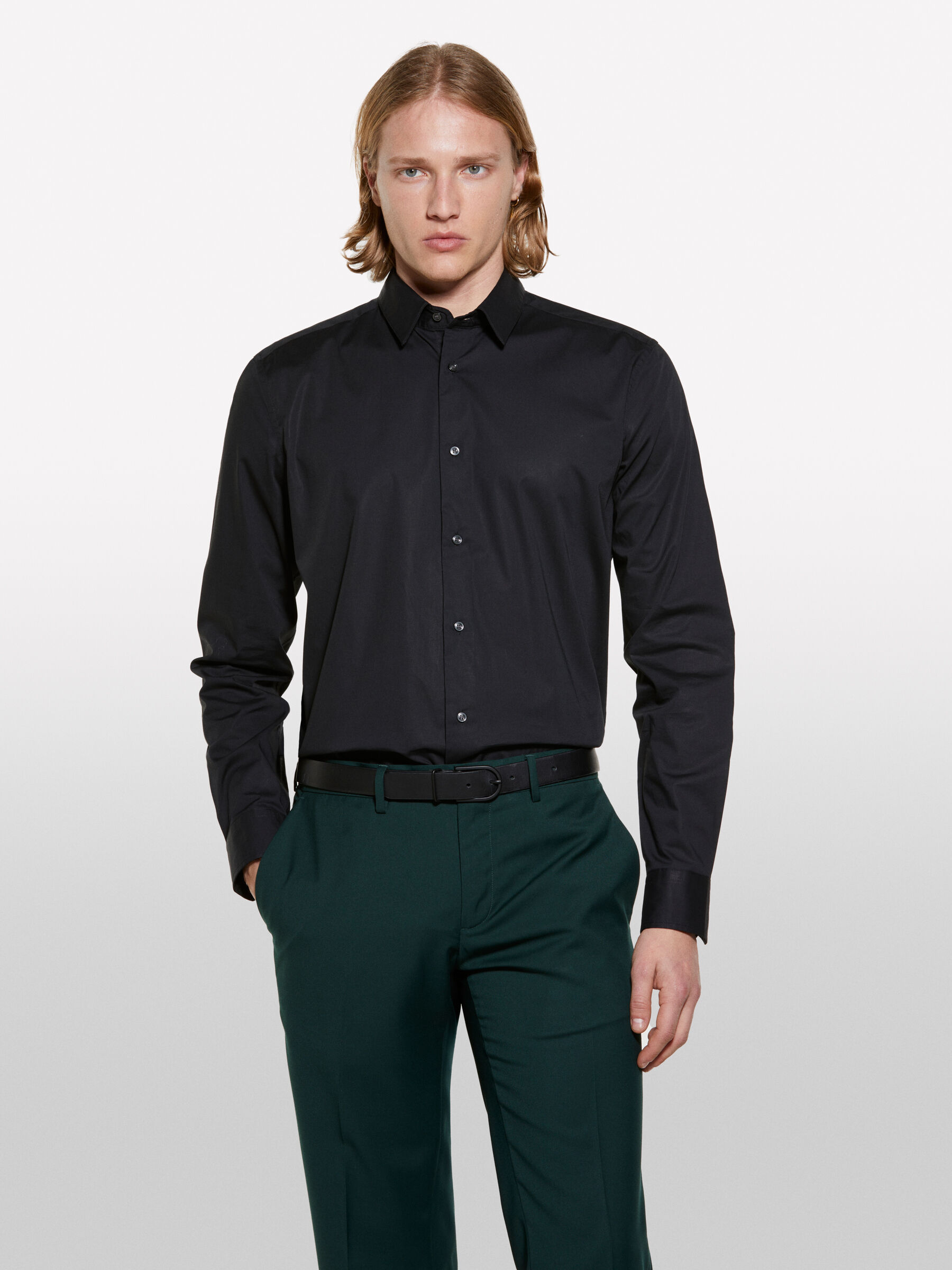 camicia nera uomo slim fit