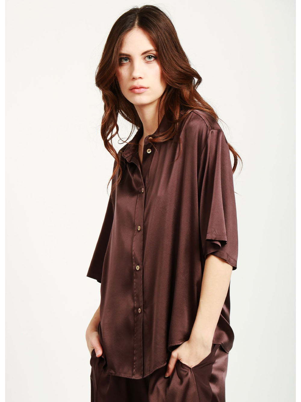 camicia seta marrone
