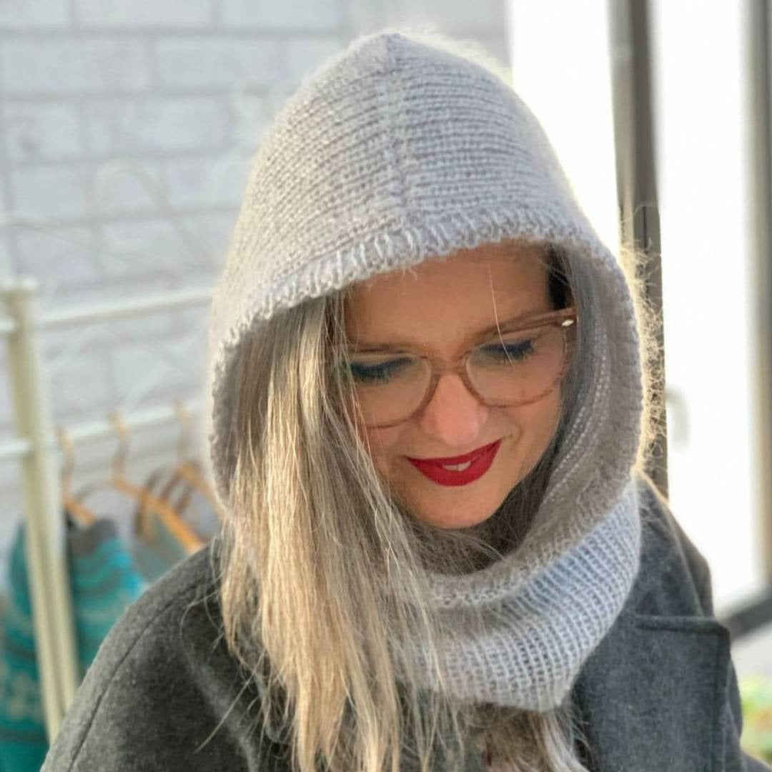 cardigan con cappuccio ai ferri
