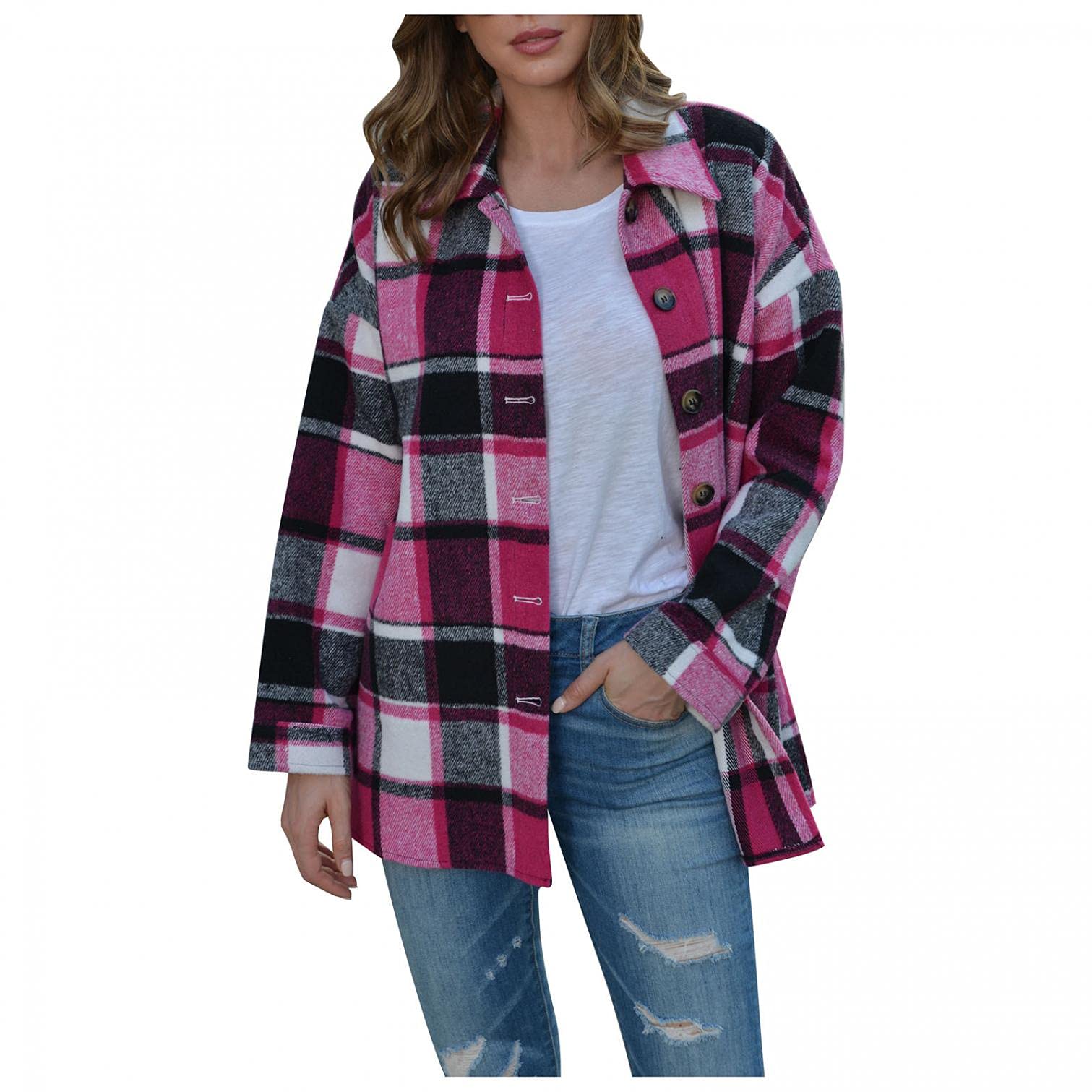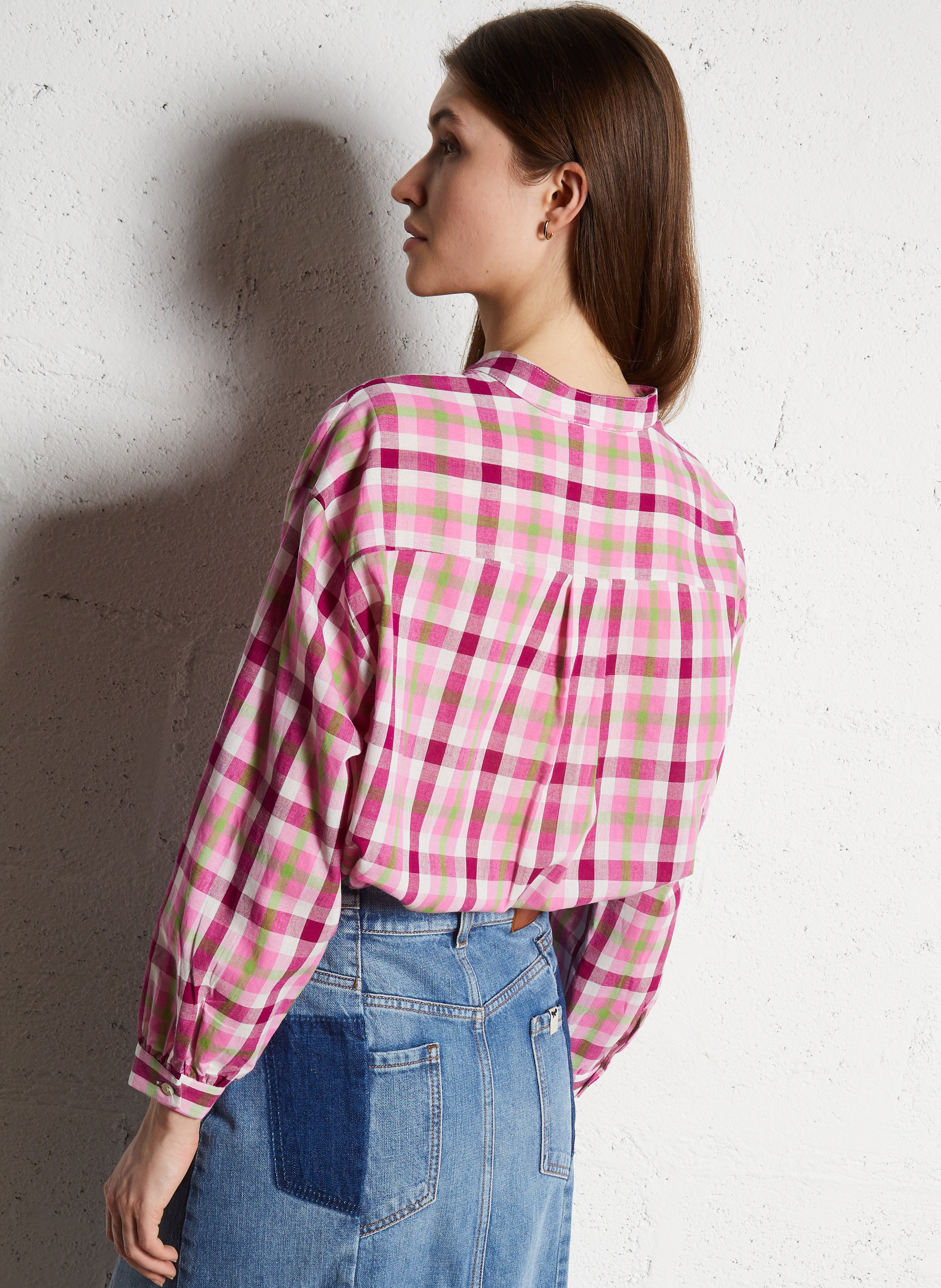 giacca camicia a quadri rosa