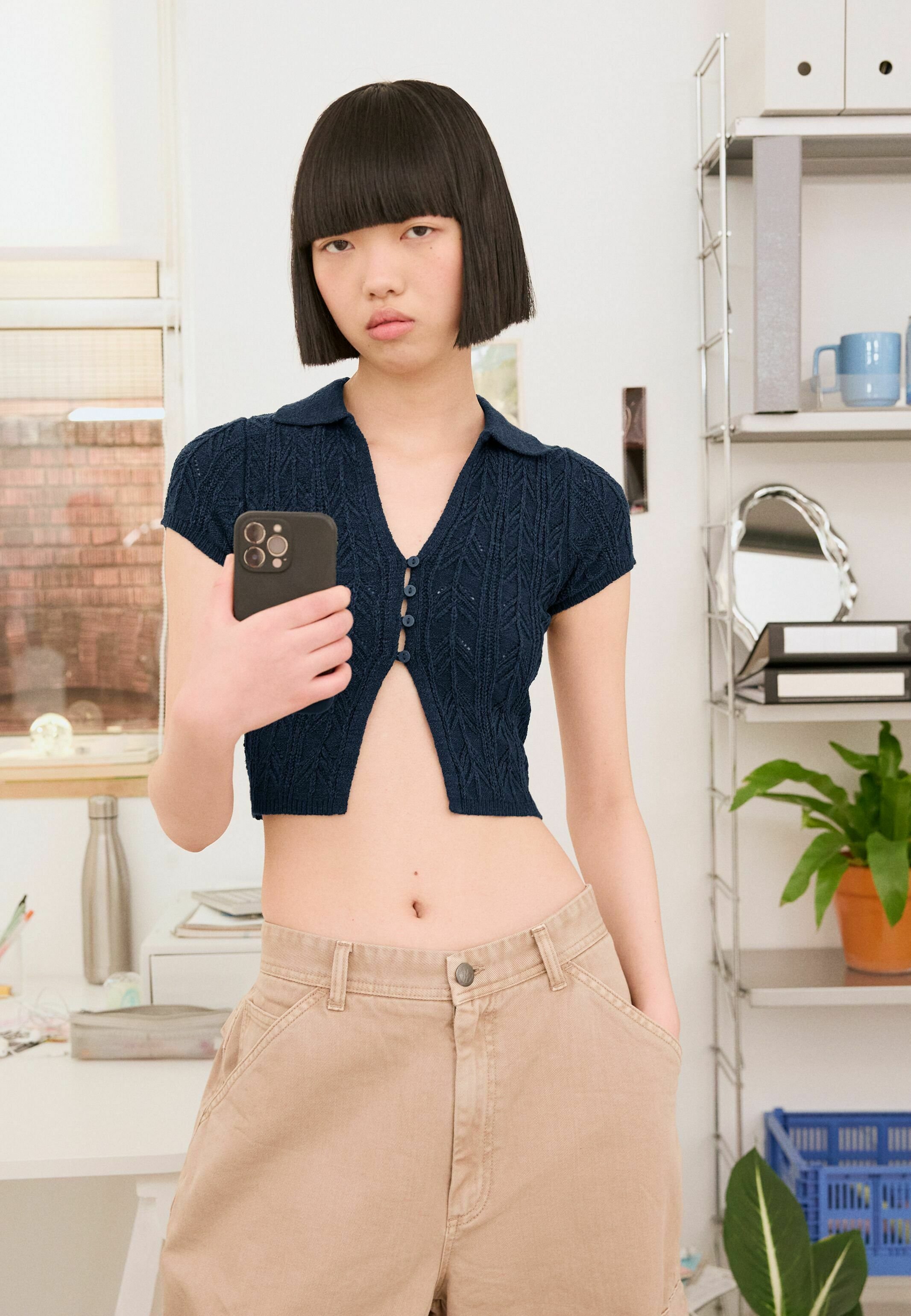 maglia a polo cropped bershka