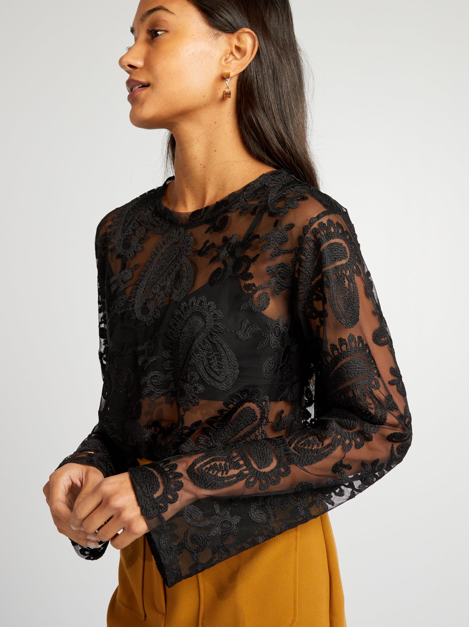 maglia di pizzo trasparente