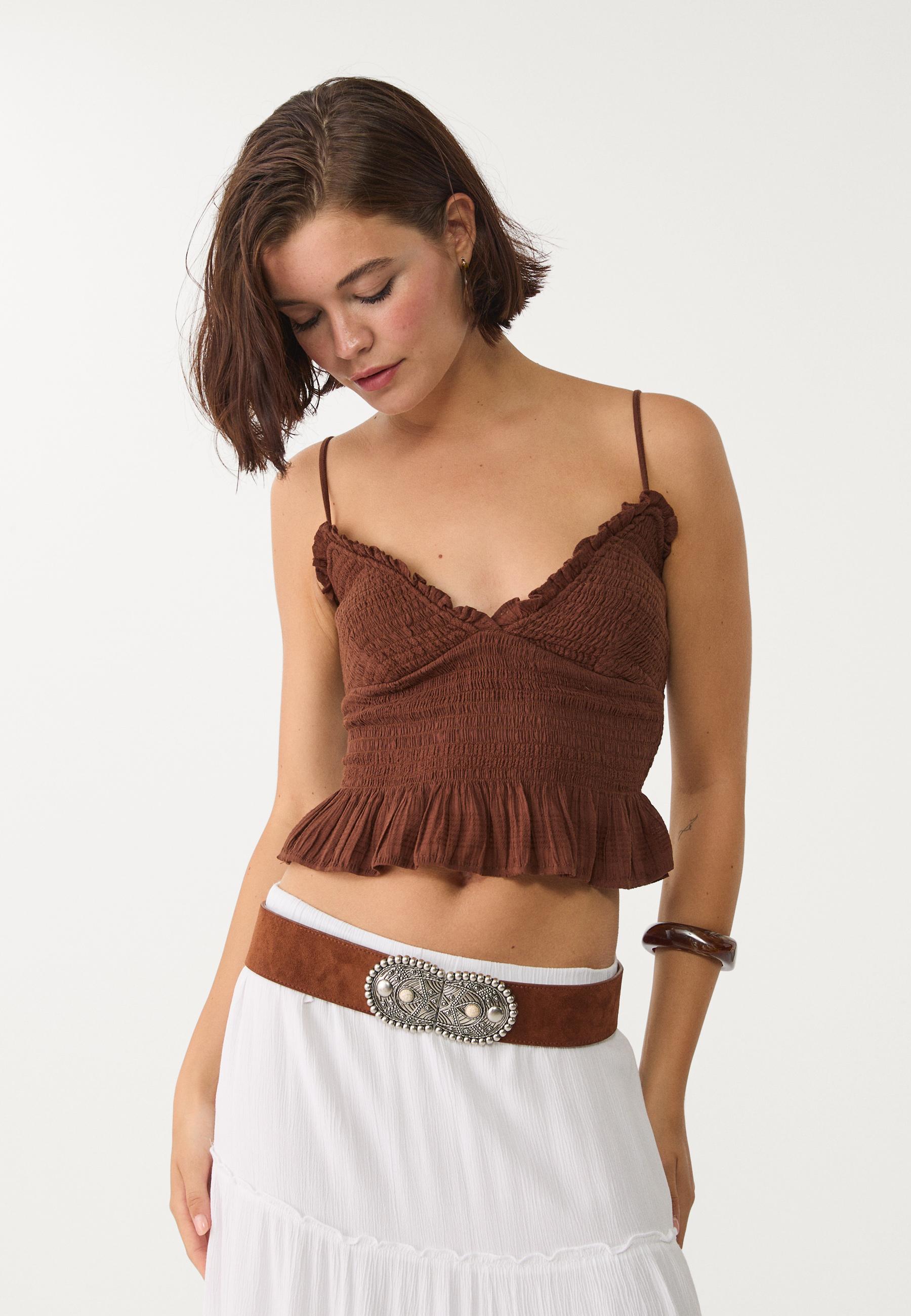 maglietta con volant stradivarius