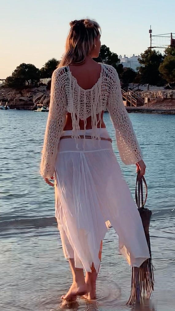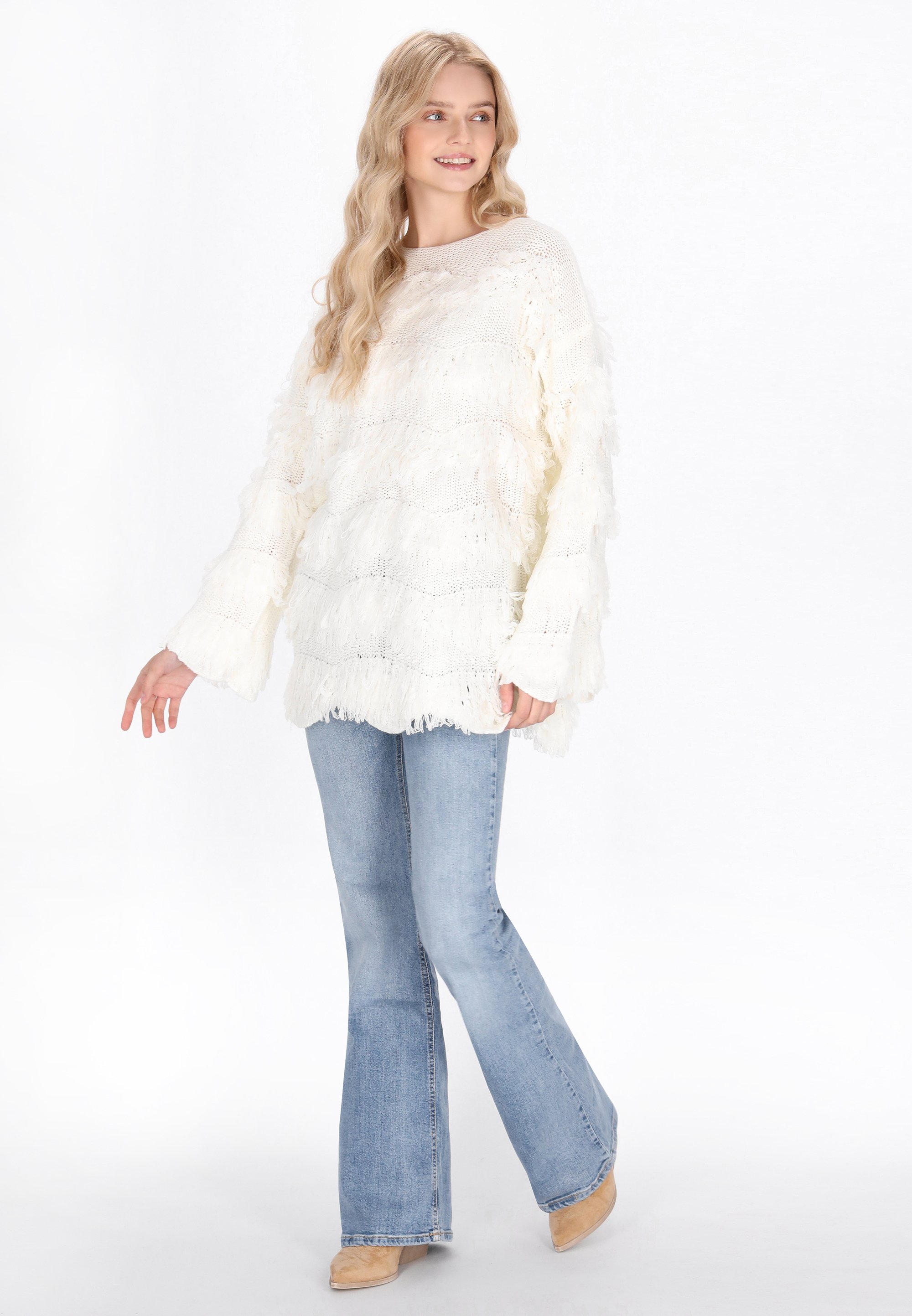 maglione bianco con frange