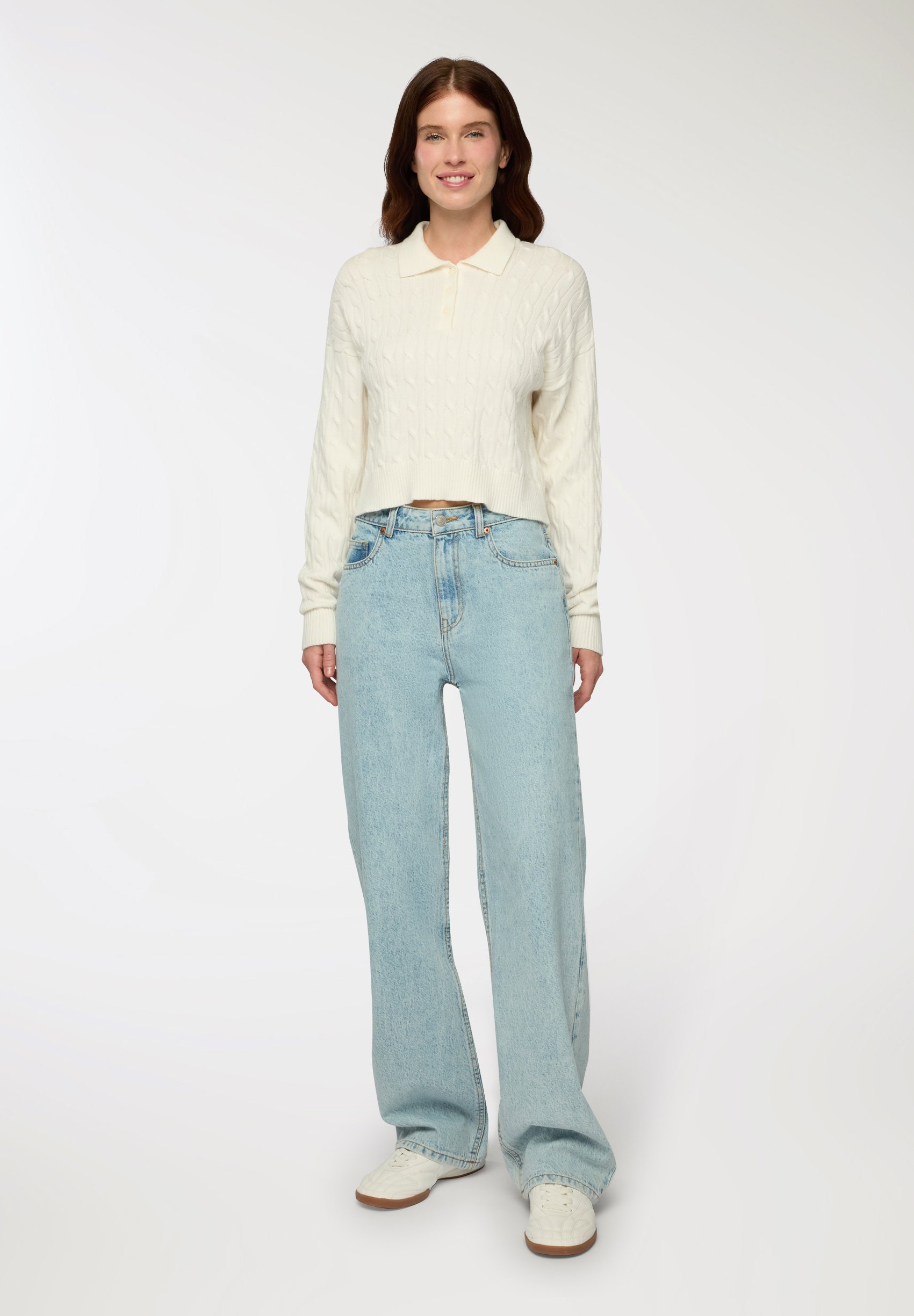 maglione bianco con trecce donna