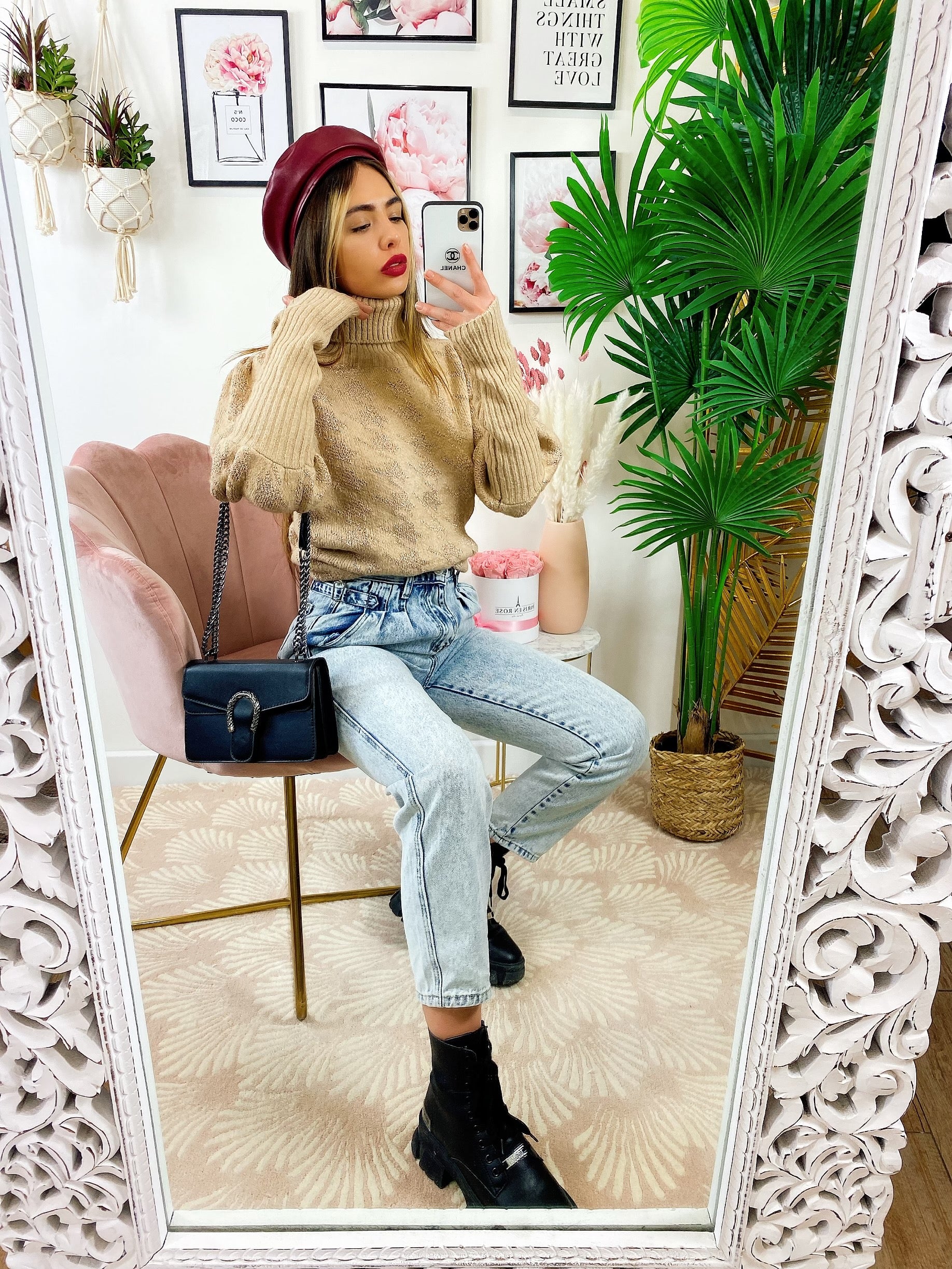 maglione collo alto beige