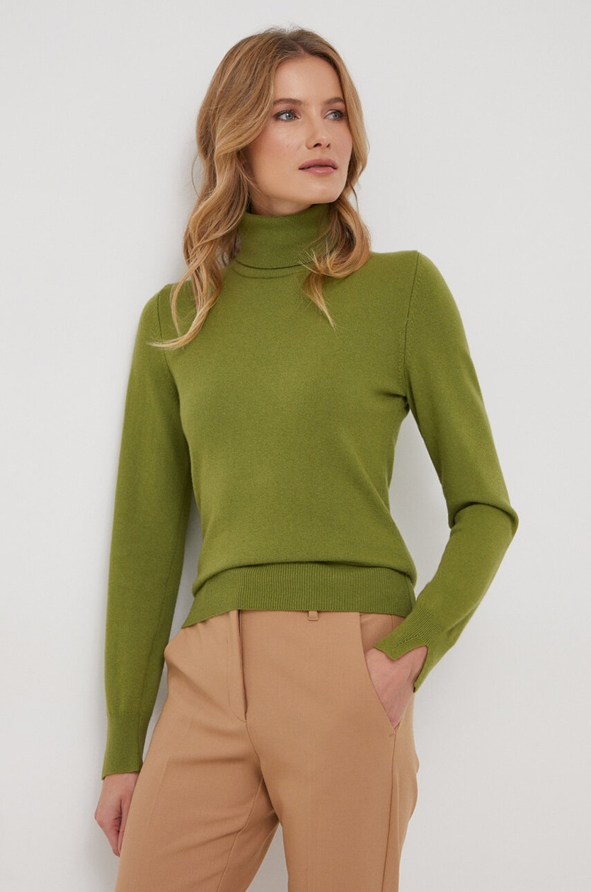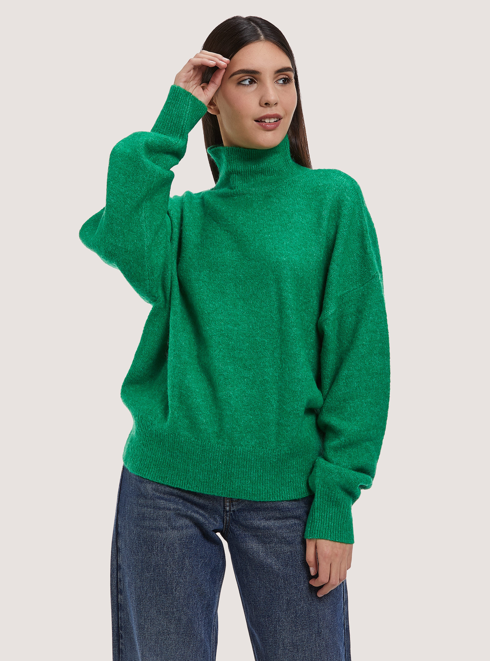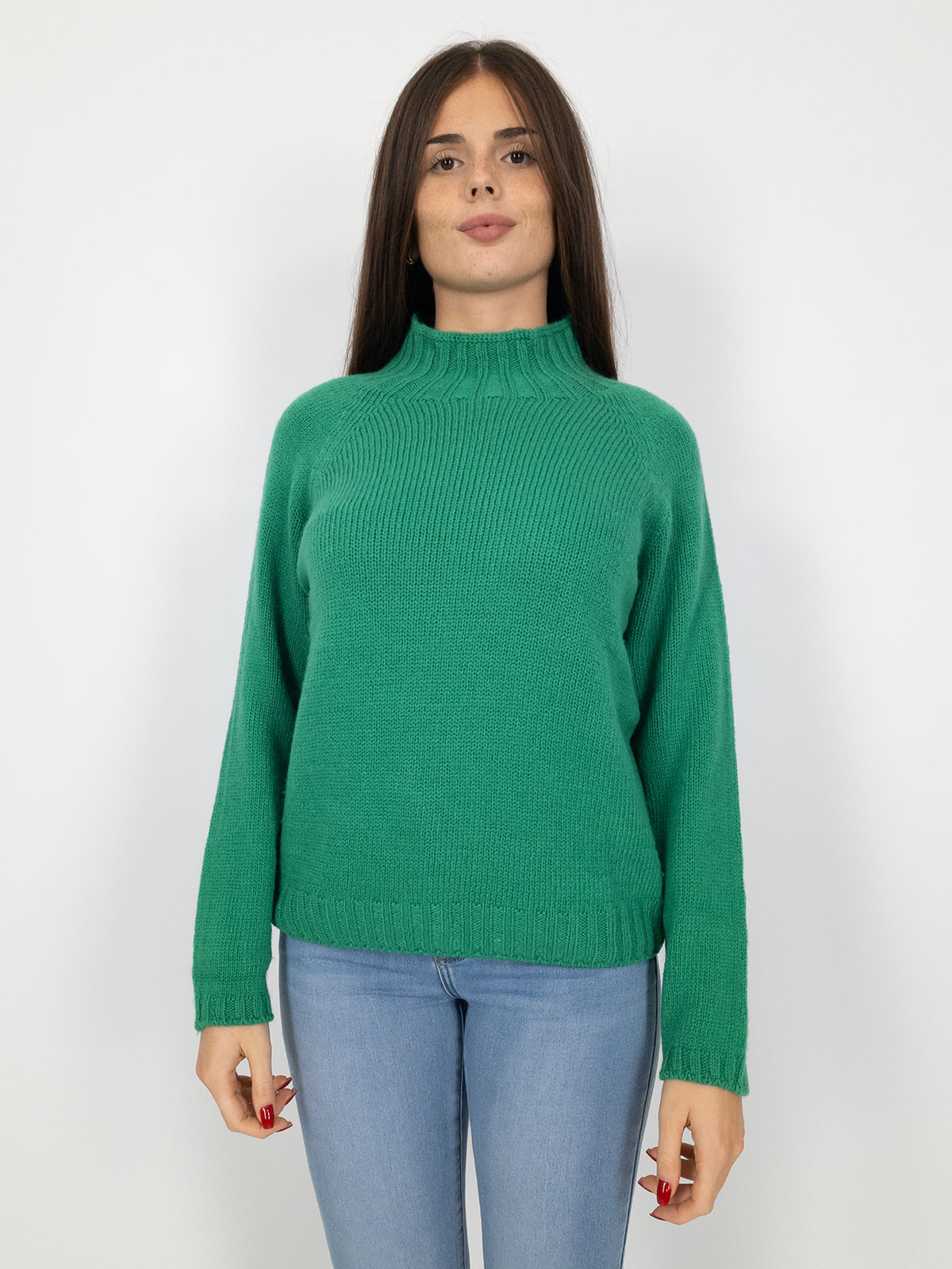 maglione collo alto verde donna
