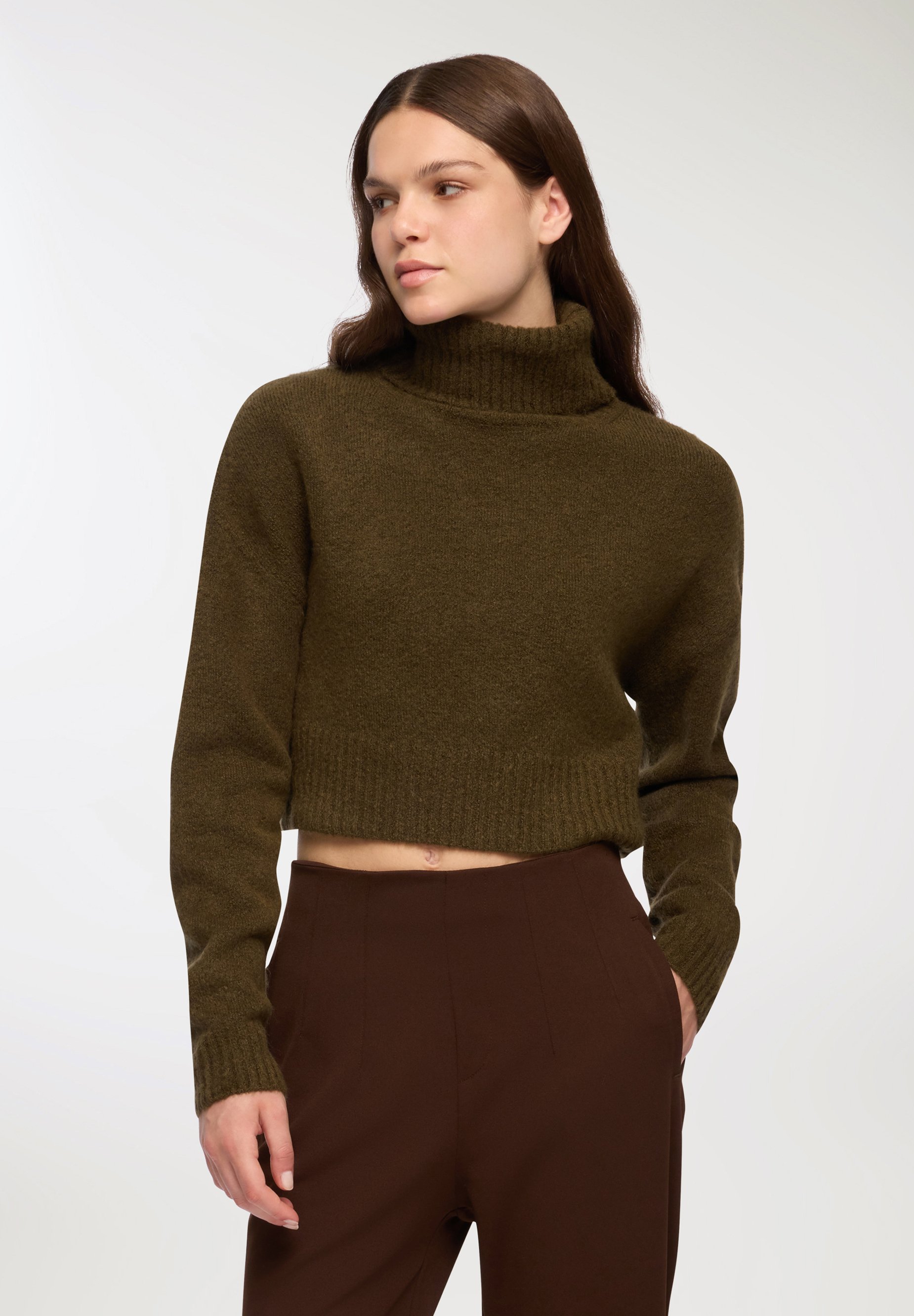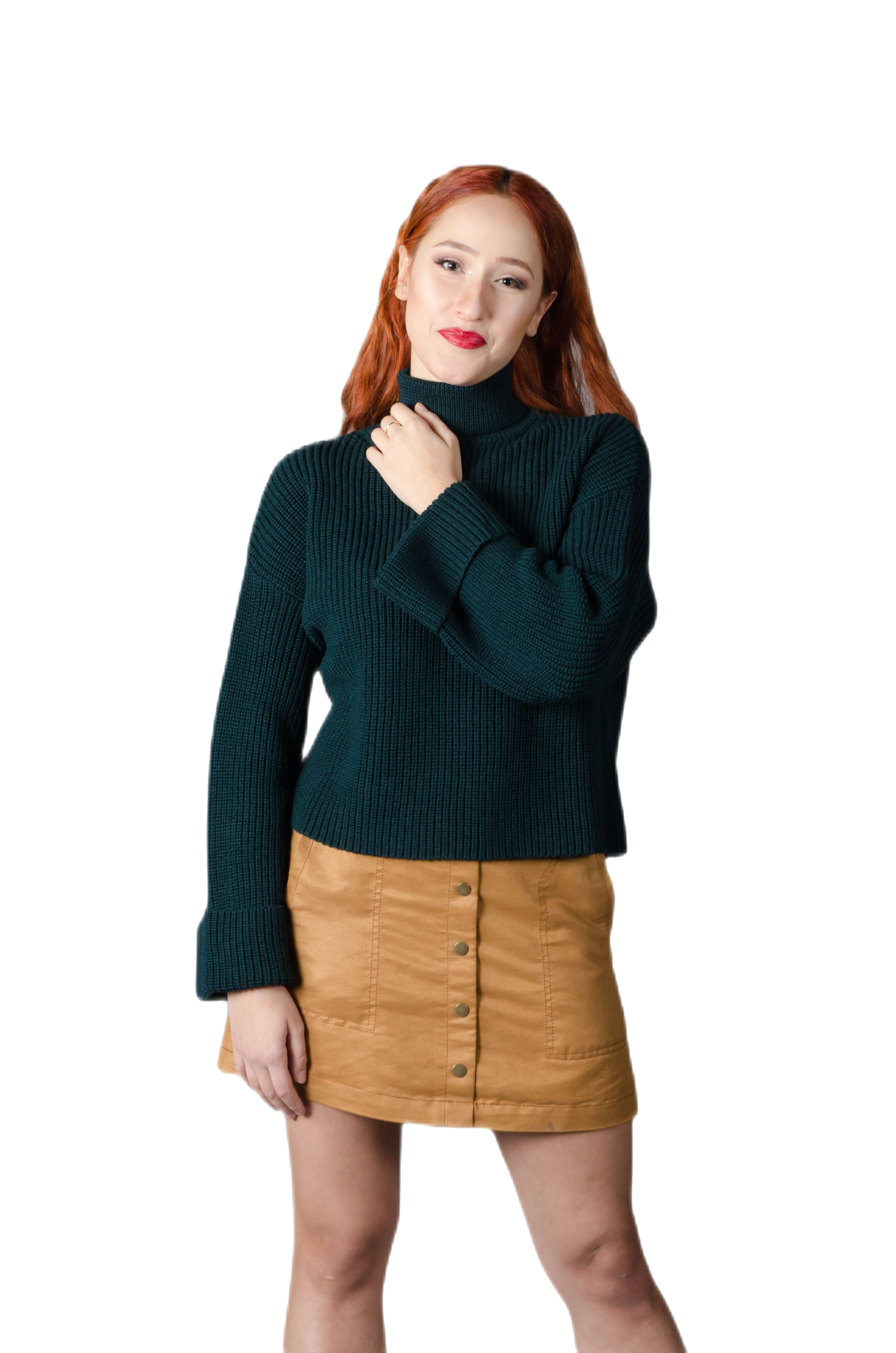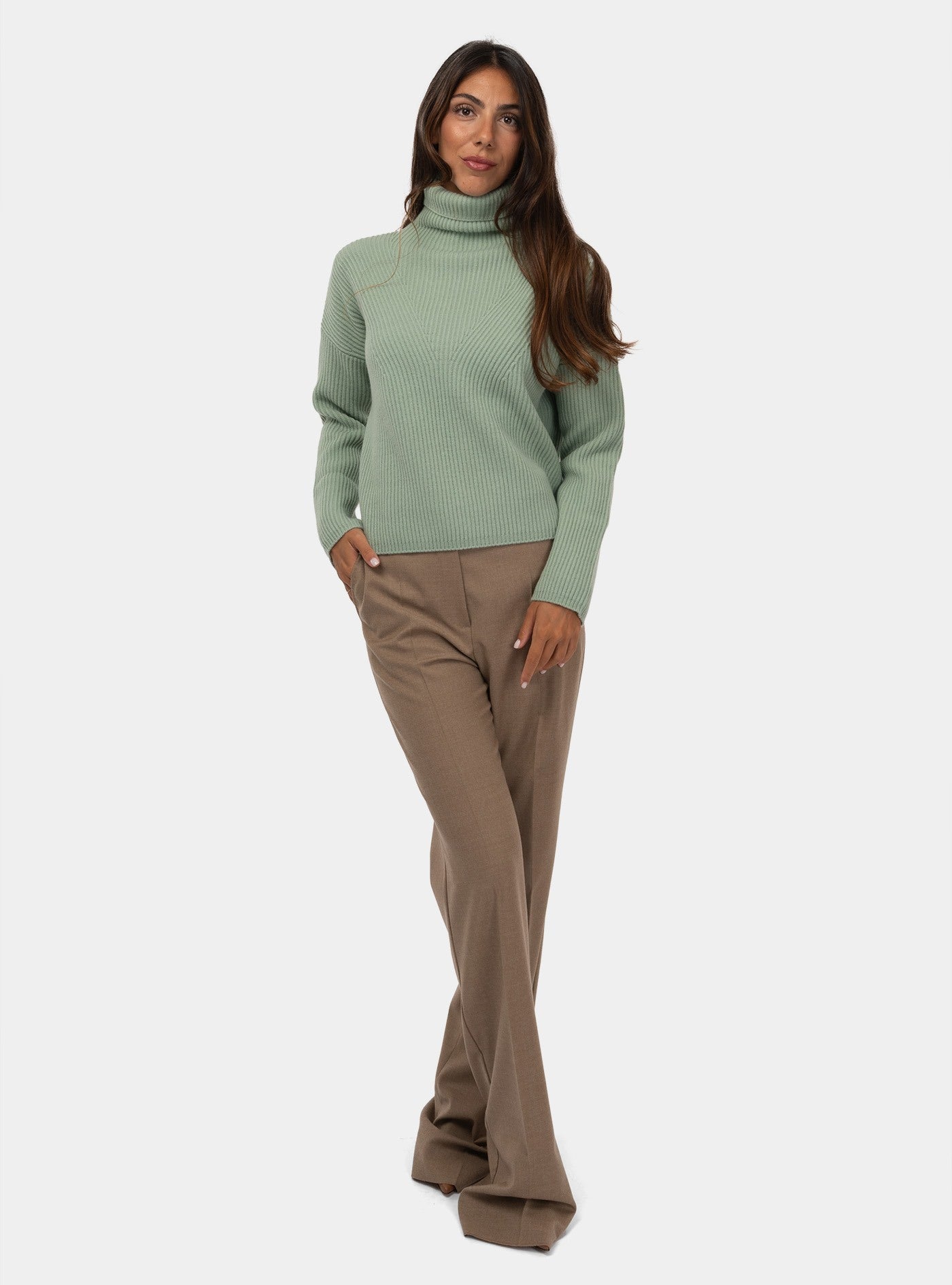 maglione collo alto verde donna