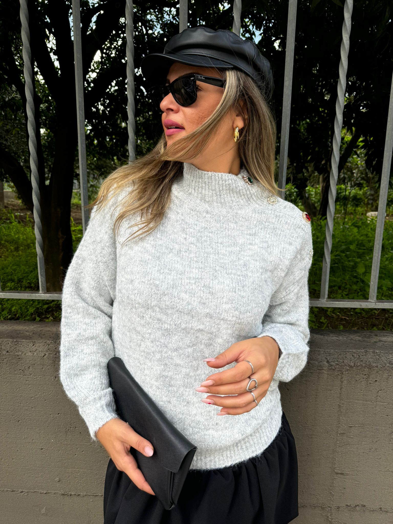 maglione con bottoni gioiello