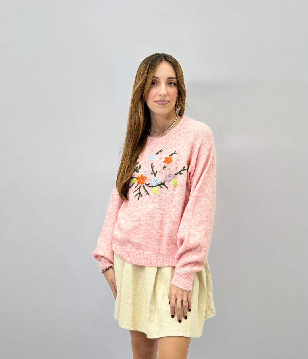 maglione con fiori ricamati