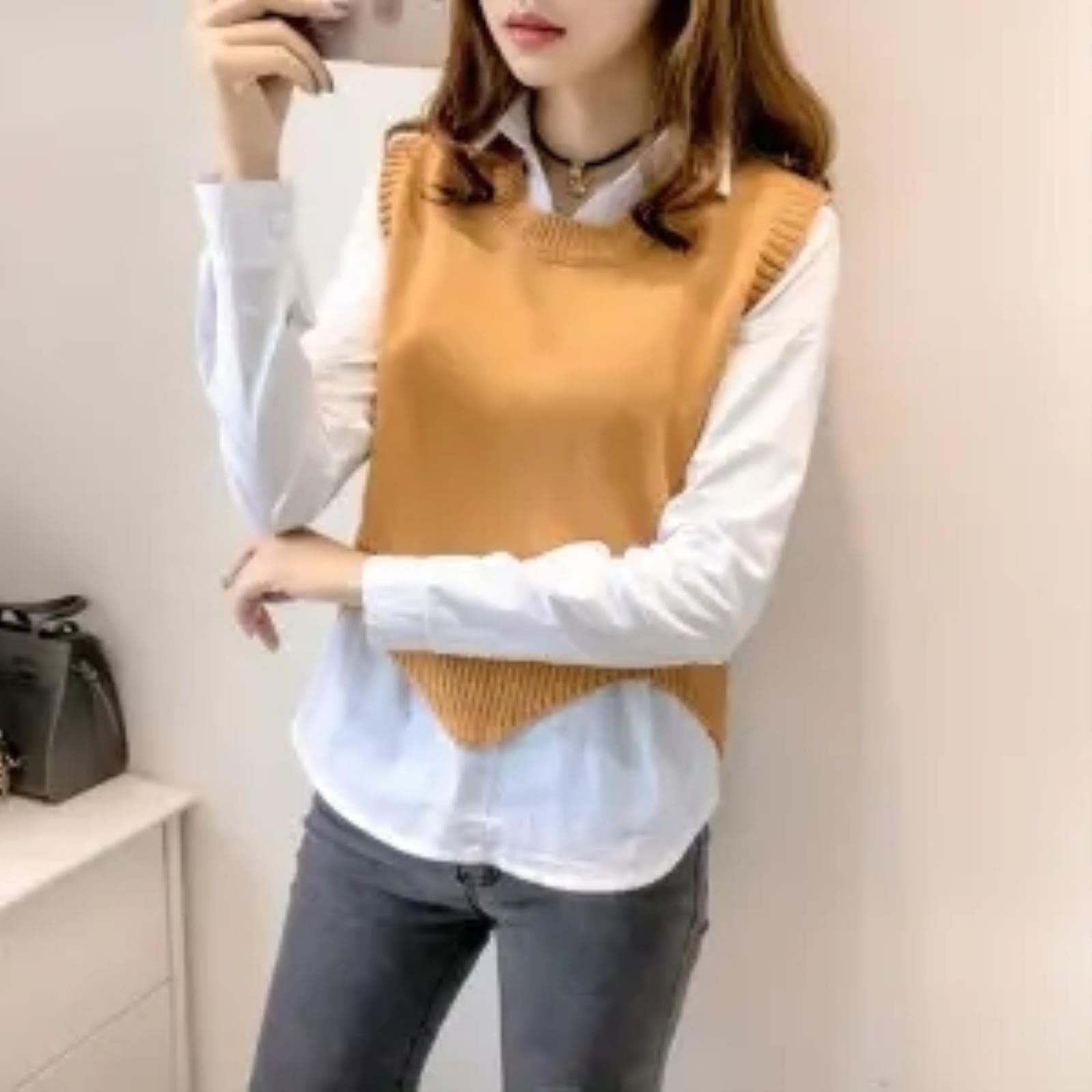 maglione e camicia bianca
