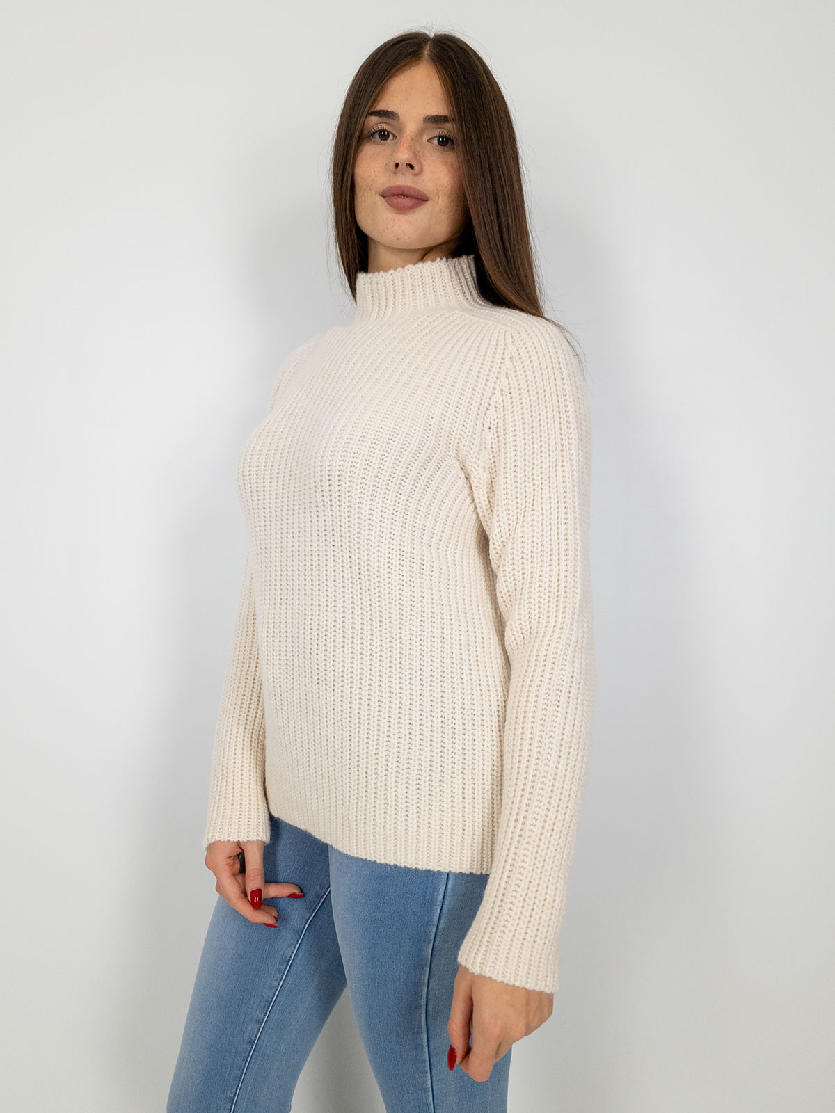 maglione panna collo alto donna