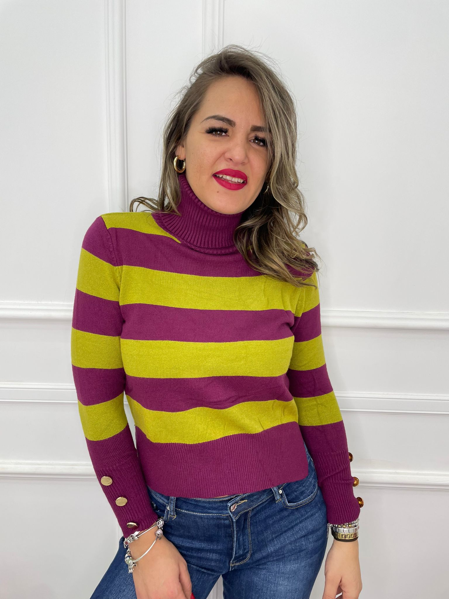 maglione righe rosse e nere