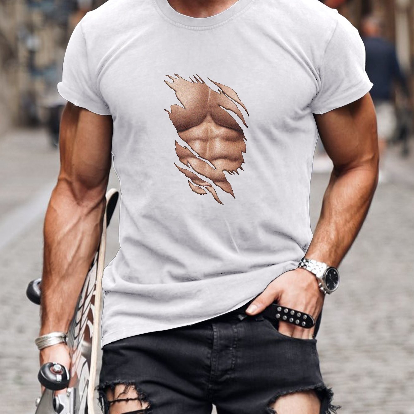 t shirt con addominali scolpiti