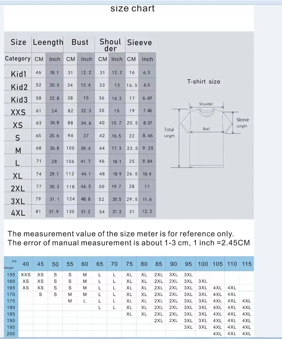 taglie americane magliette