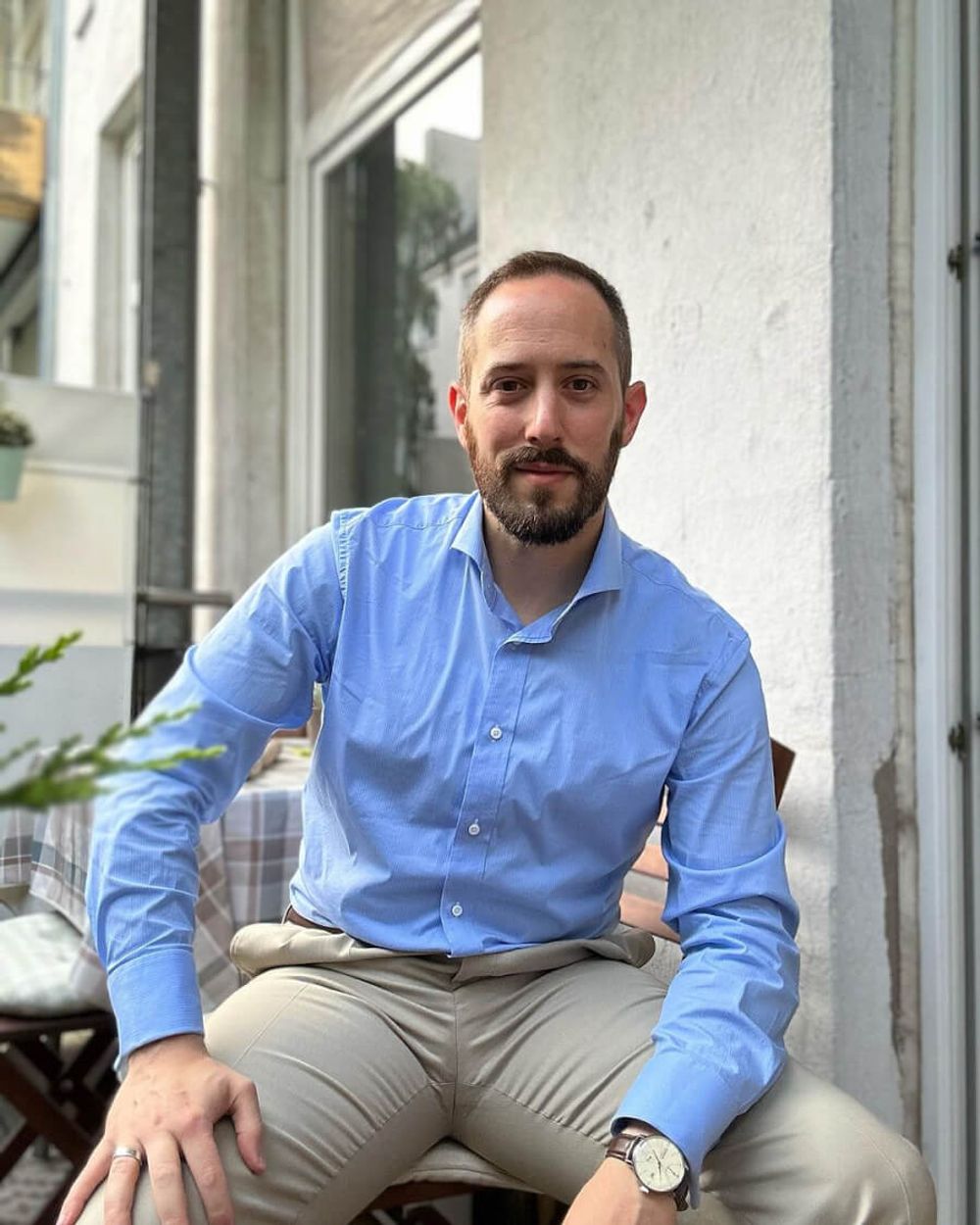 camicia celeste outfit