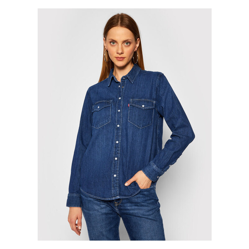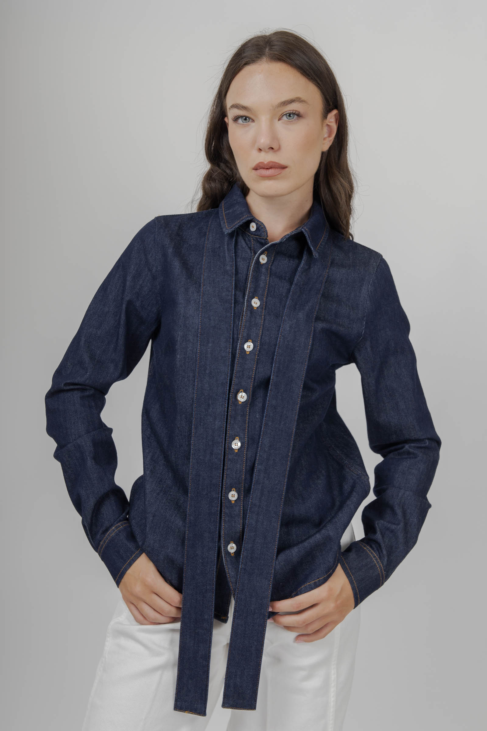 camicia jeans blu scuro donna