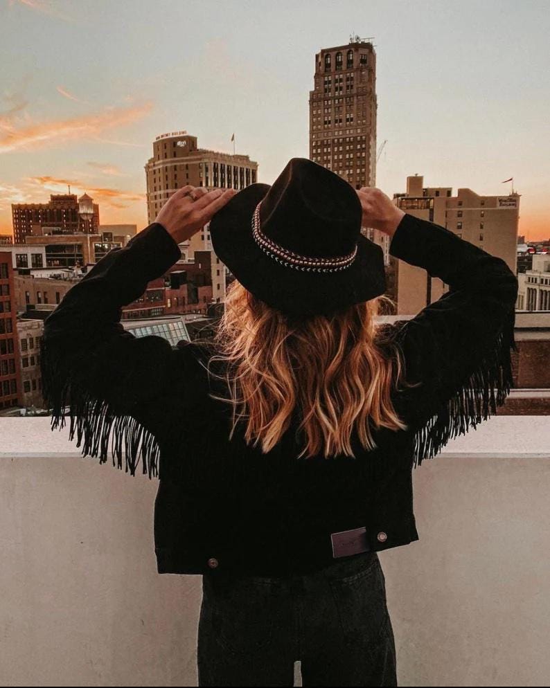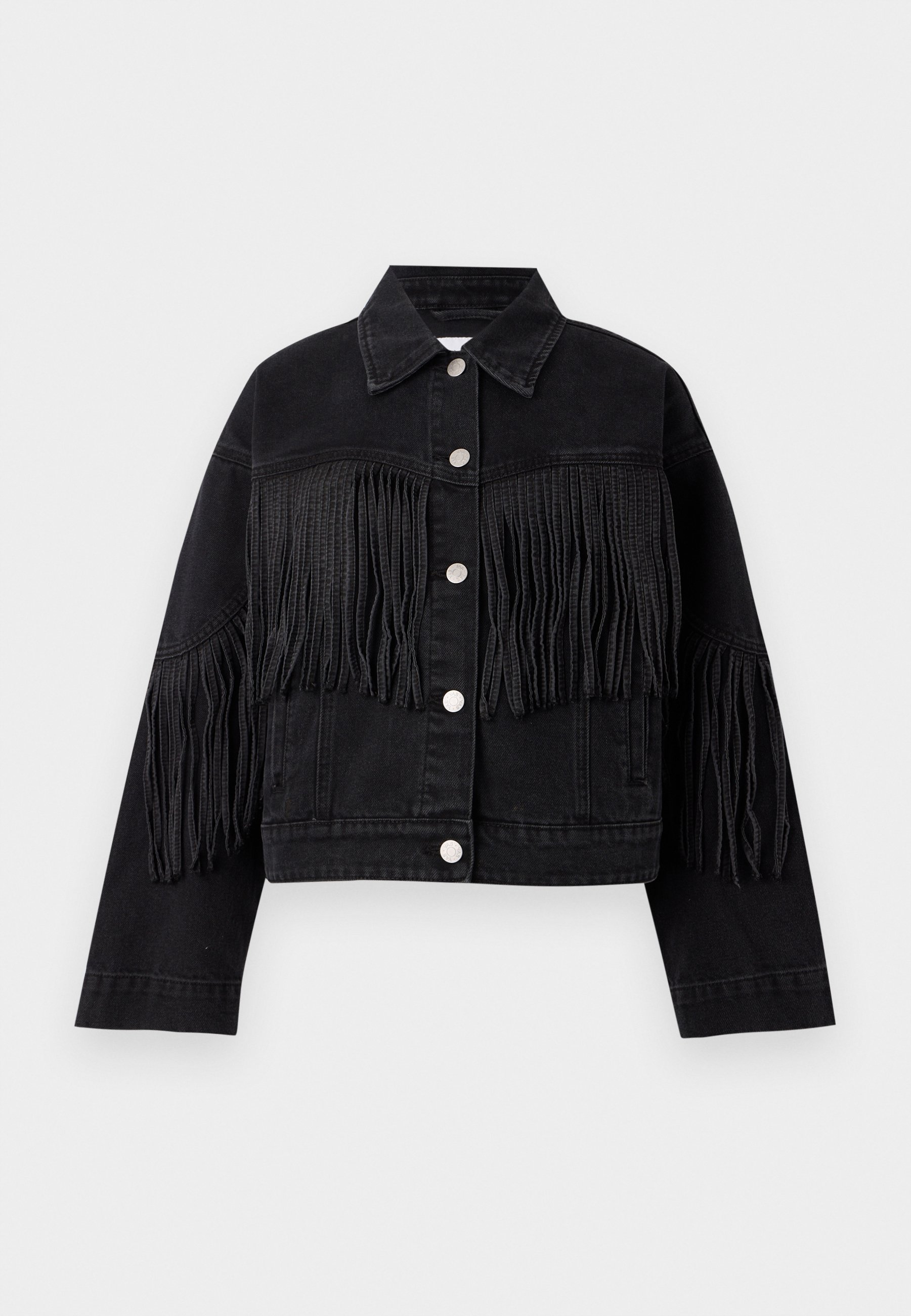 giacca di jeans nera con frange