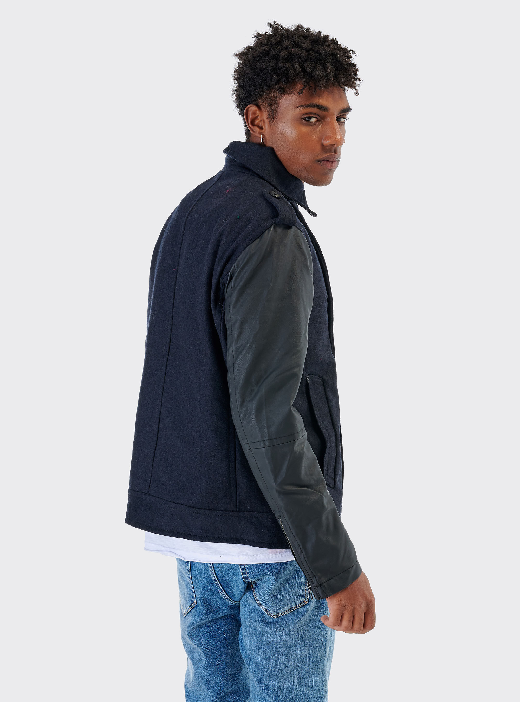 giacca uomo con maniche in pelle