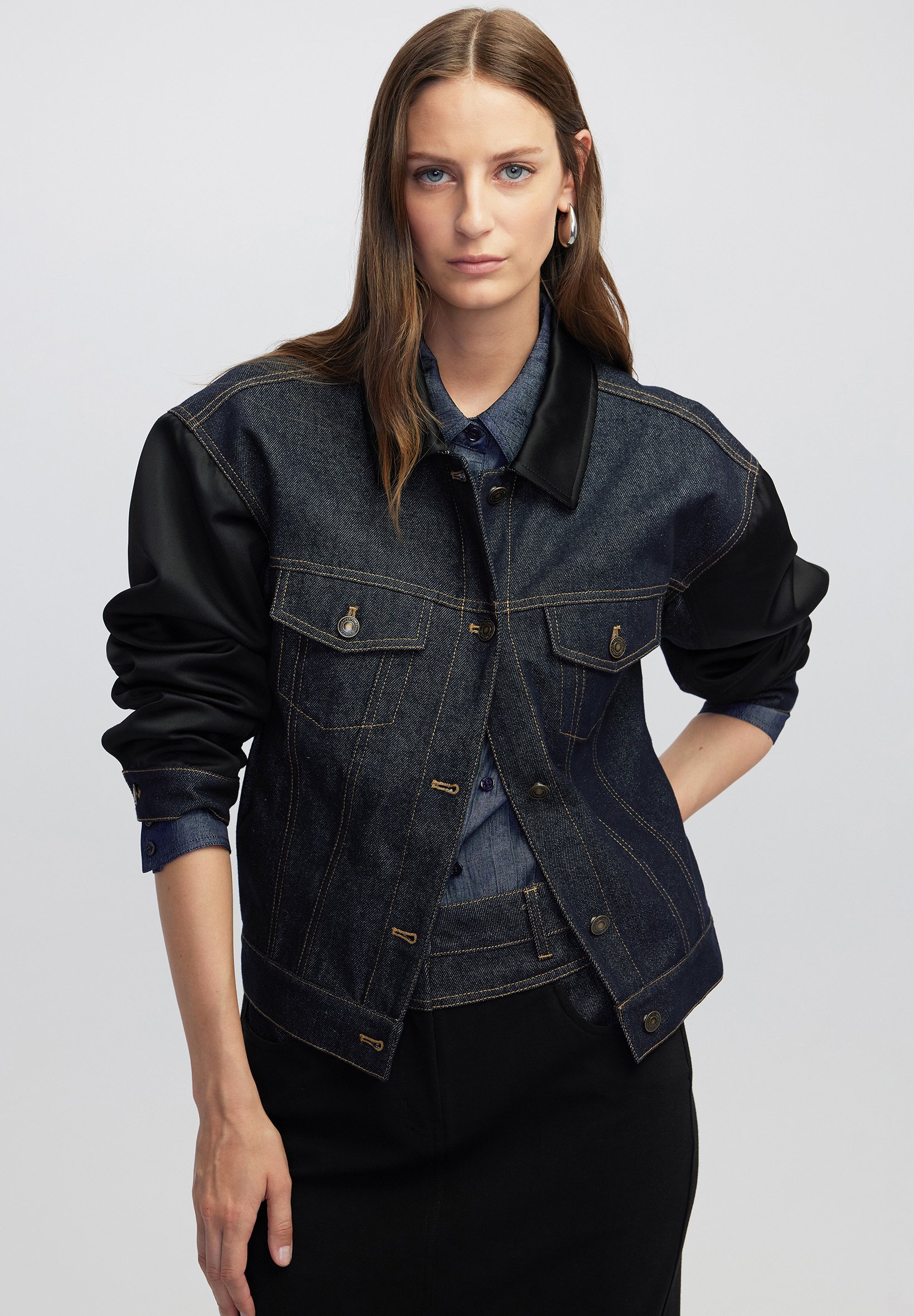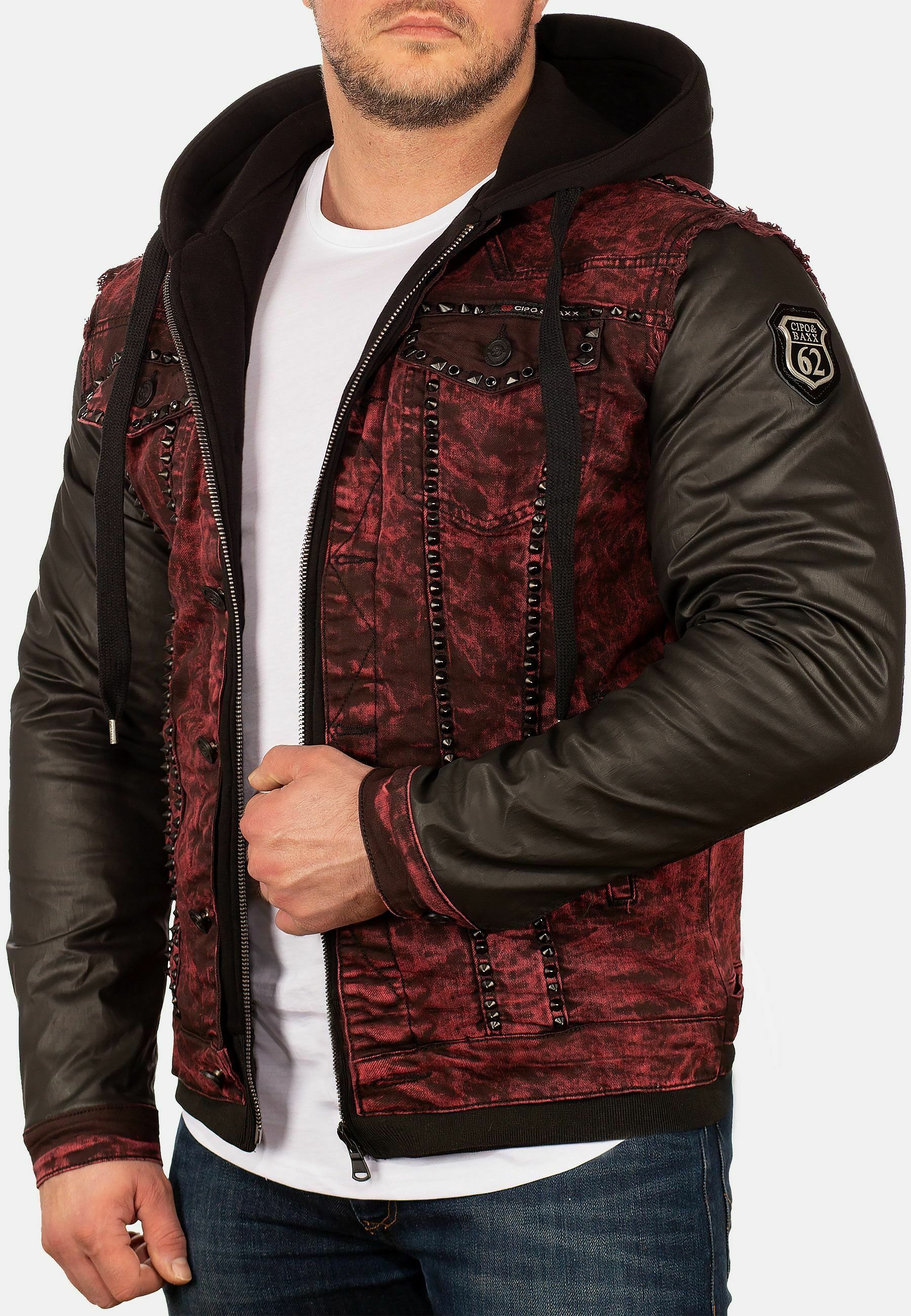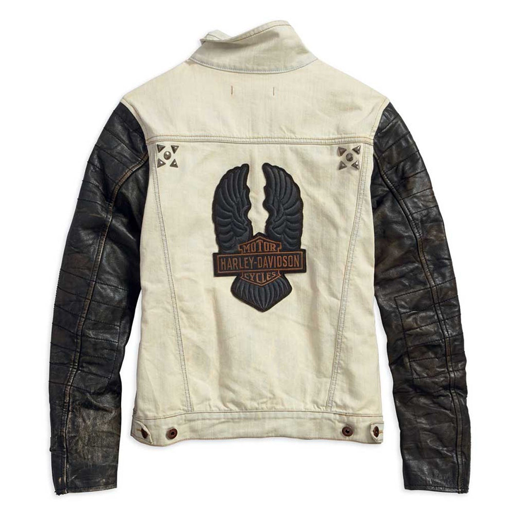 giubbotto di jeans con maniche in pelle