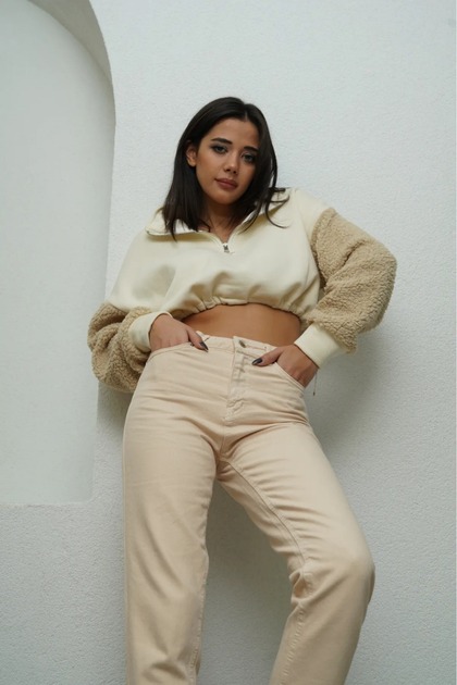 jeans beige mom