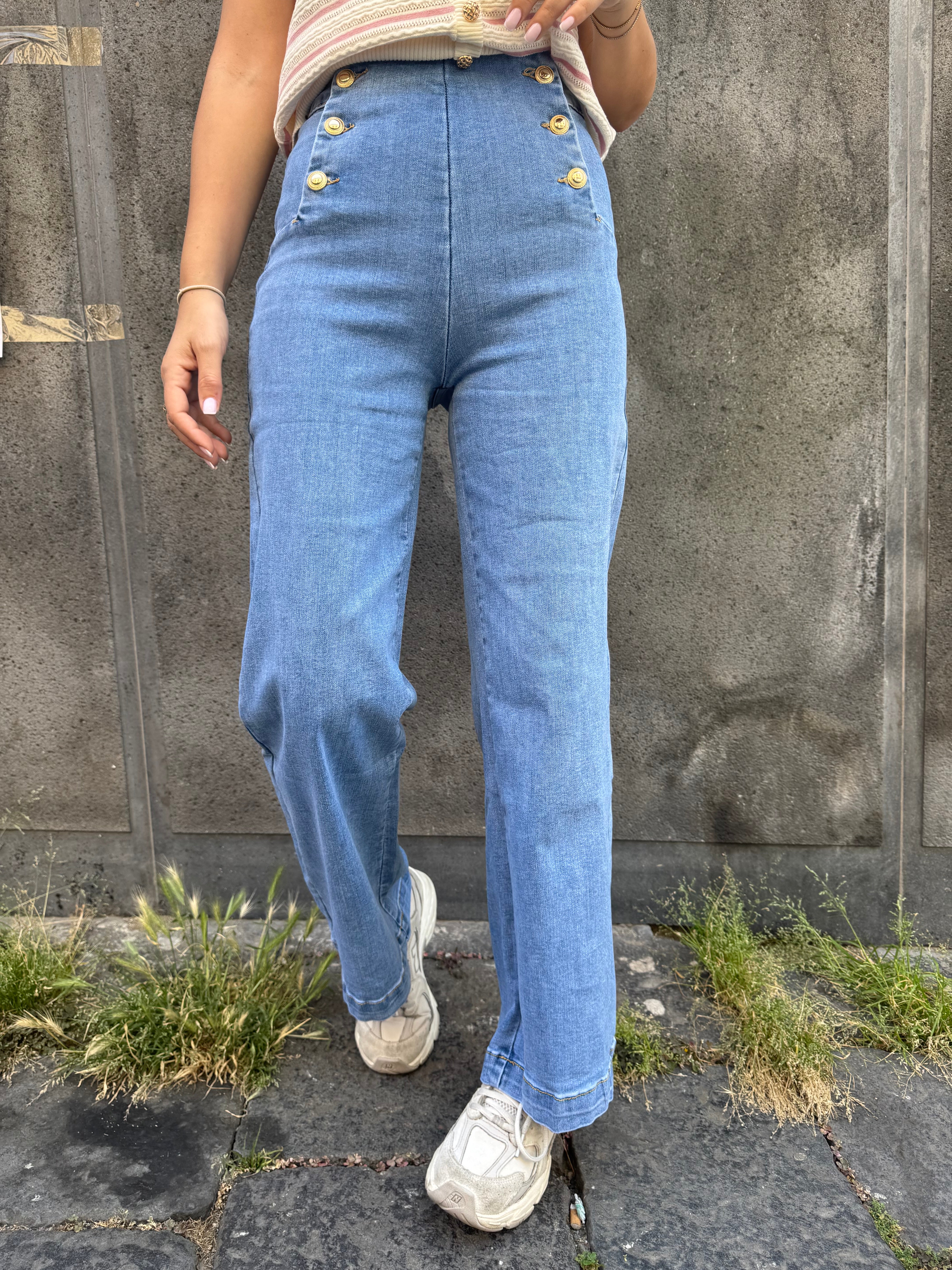 jeans con bottoni laterali