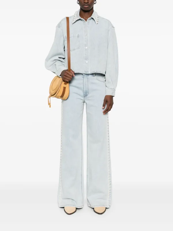 jeans con perle sul fondo
