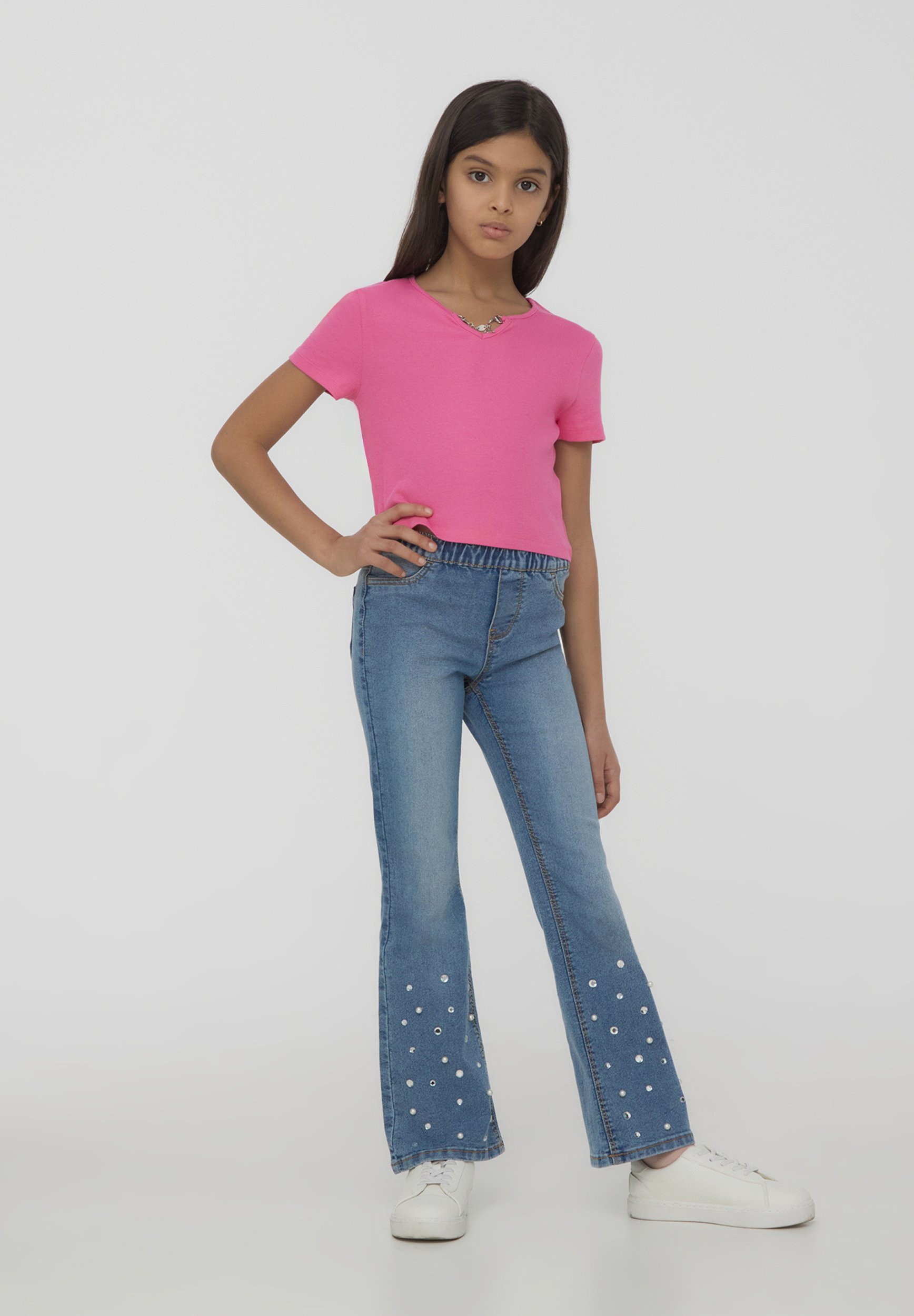 jeans con strass e perle