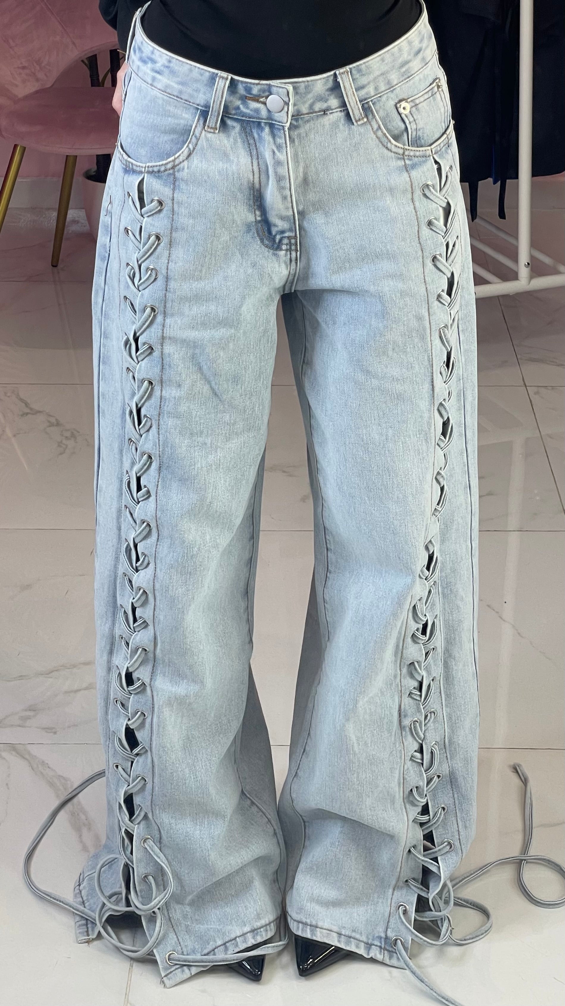 jeans con stringhe